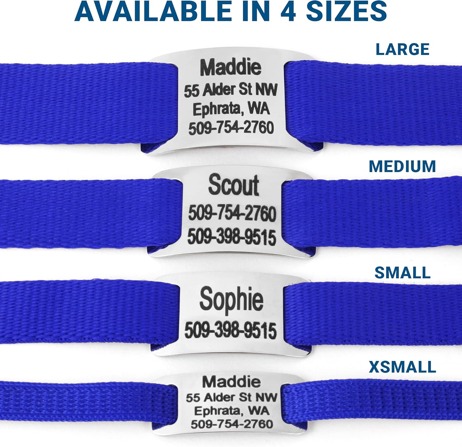 GoTags Personalized Dog Collar with Nameplate, Adjustable Dog Collar with Custom Engraved Slide On Pet ID Tag in Stainless Steel, Silent, No Noise Dog Tag for Large Medium and Small (Blue, X-Small)