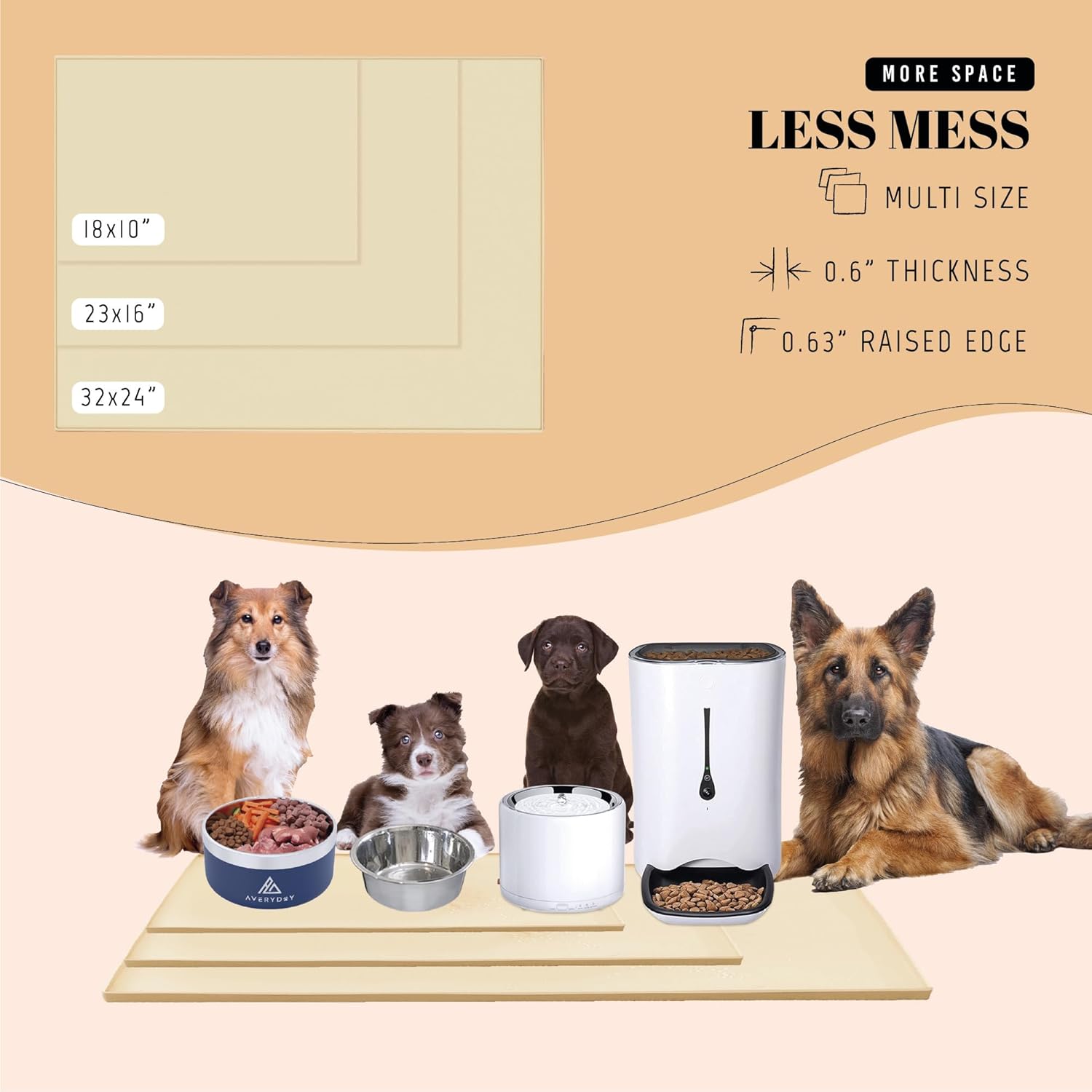 - Perfect for Medium to Large Breeds: Need a premium dog bowl mat for medium and small breeds? Elevate feeding affordably with AVERYDAY's 32x24'' pet bowl mat - where quality meets affordability for your furry friends