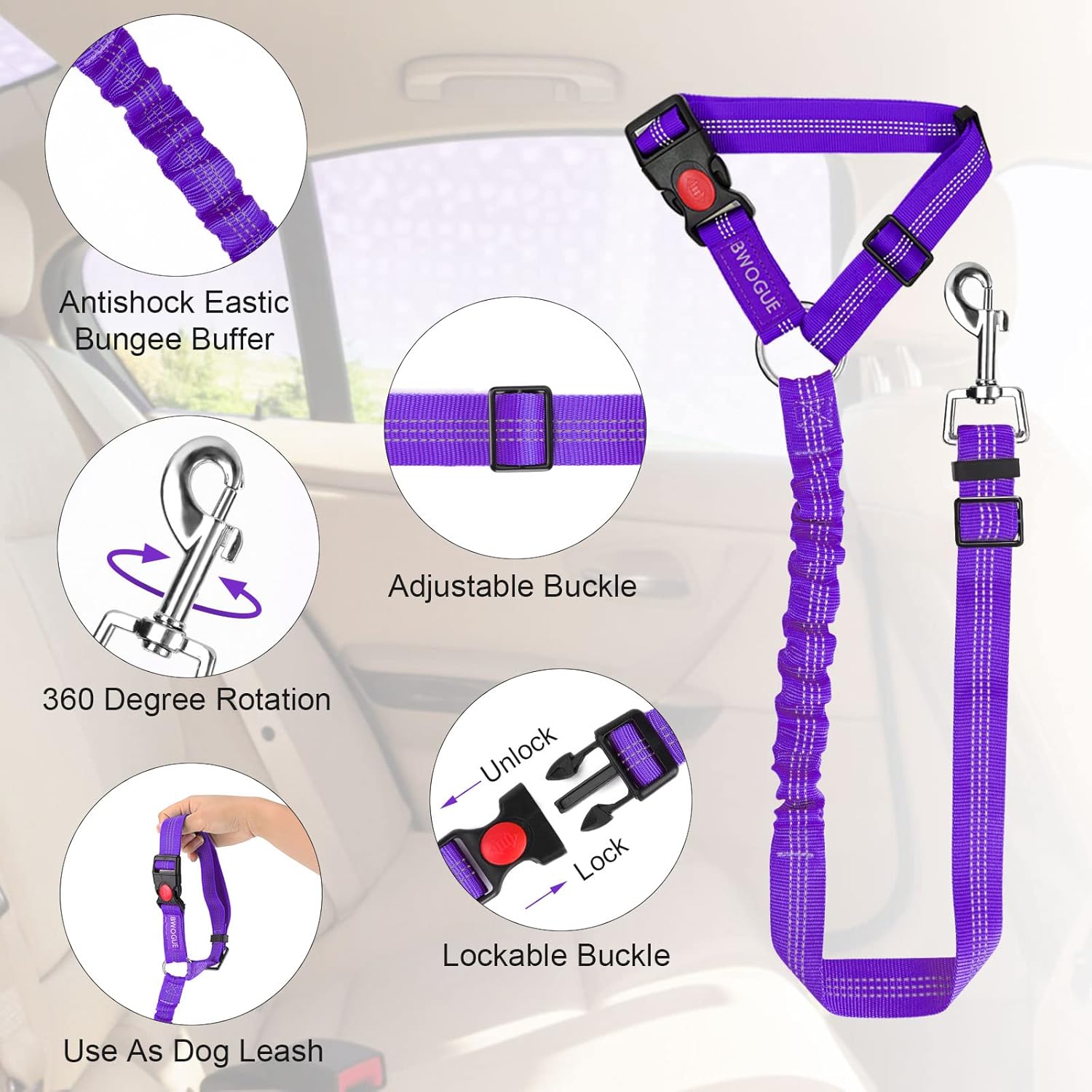 - Dog Cat Safety Seat Belt: The elastic bungee helps dog prevent jerking with sudden movement. the pet car seat belt ensures the most safest traveling for your pet, and provides a most relaxing driving experience for you.