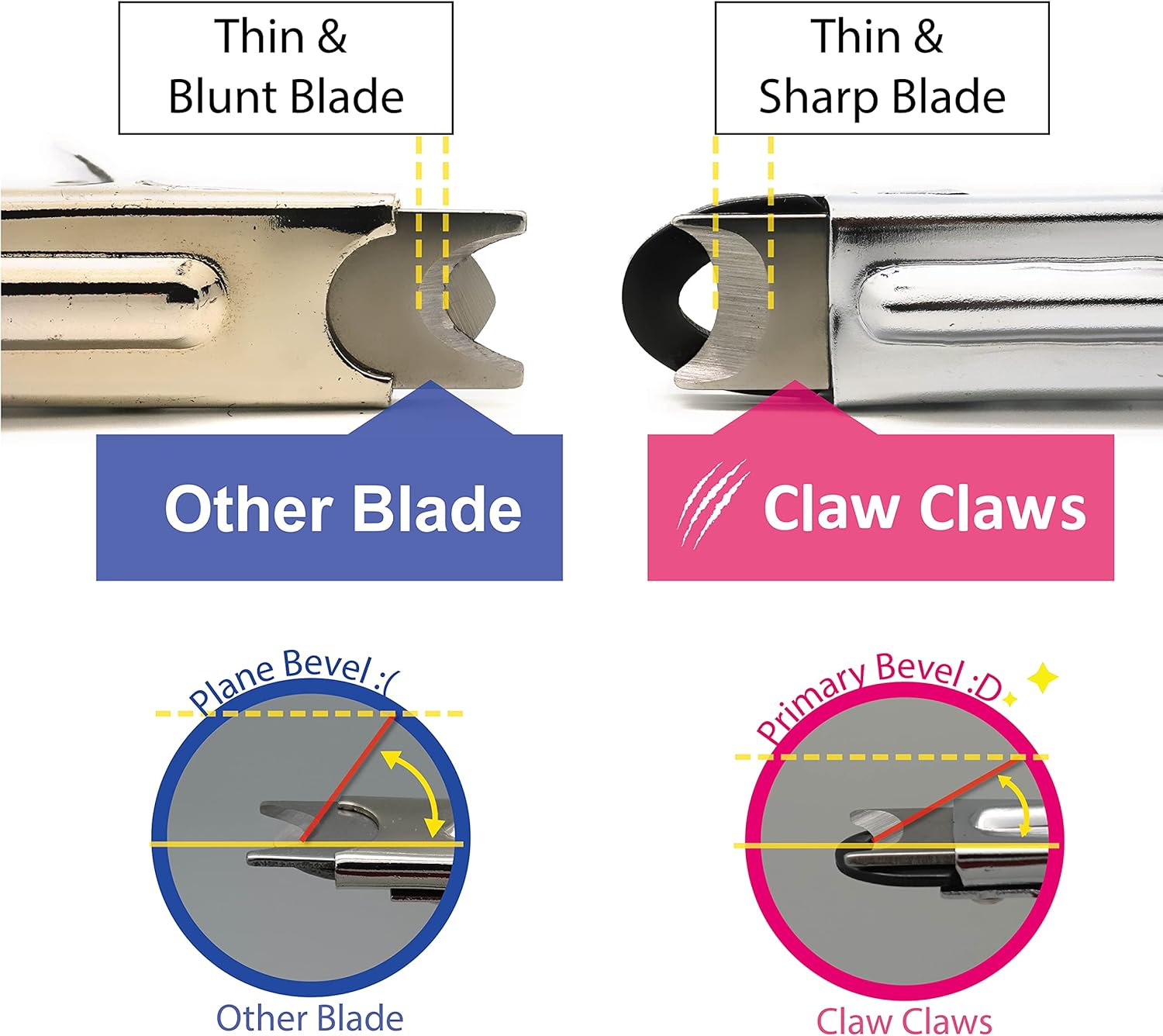 - 【Take the Stress Out of Trimming Your Dog's Nails】- Claw Claws Pet Nail Clipper has a sharp blade and a steady grip, which enable to cut your pet's nails quickly and easily without frightening them.
