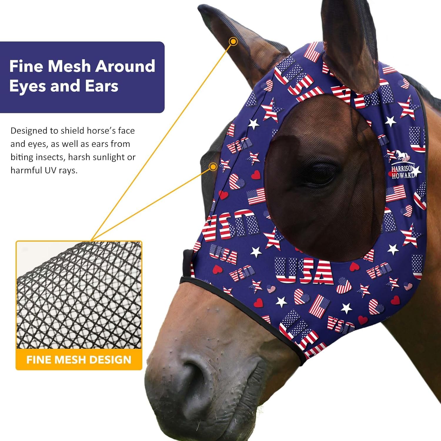 Harrison Howard Super Comfort Stretchy Fly Mask Large Eye Space with UV Protection Soft on Skin with Breathability Classic Letters Full Size