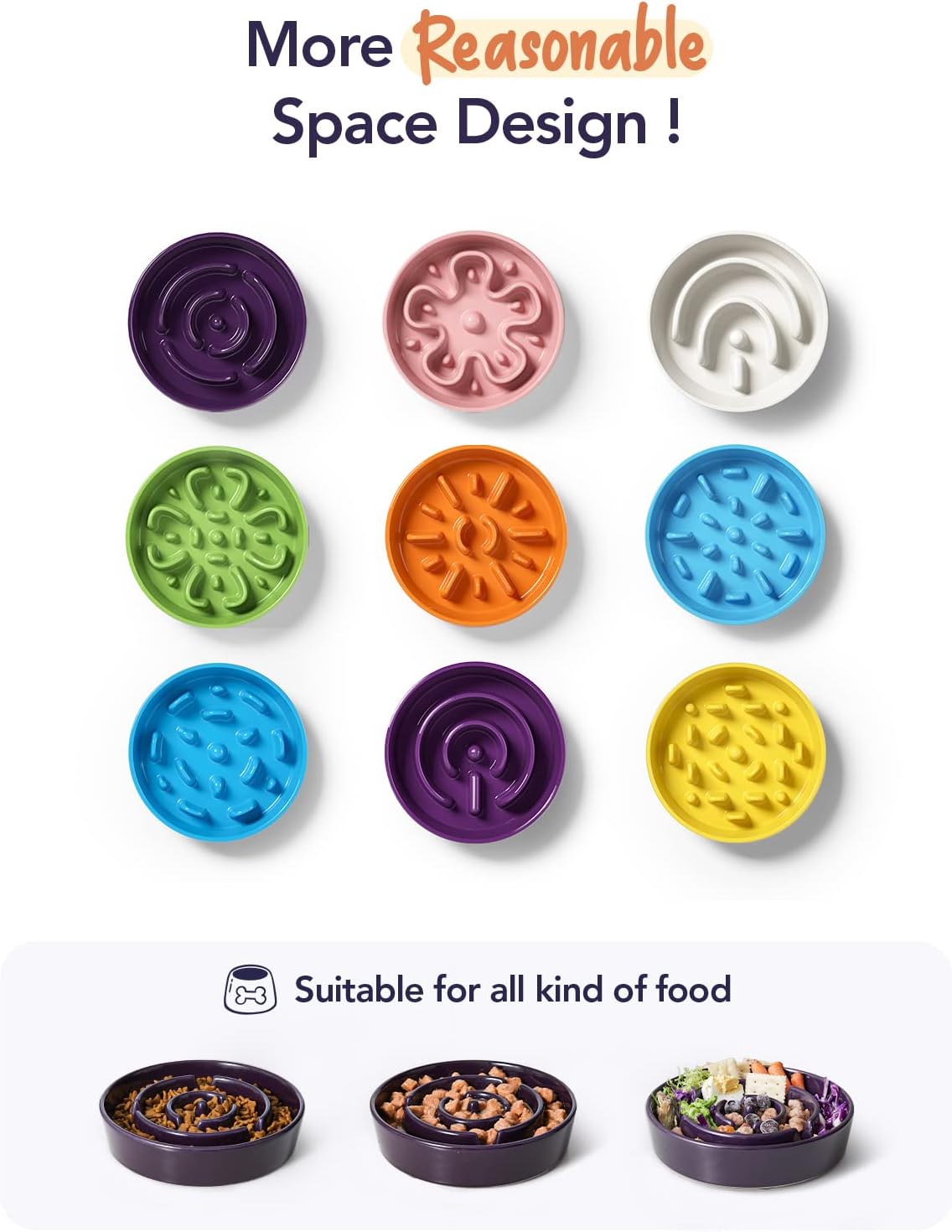 - Slow Down Eating, Bring Dog A Healthy Diet: Fast-eating dogs experience bloat, regurgitation, and obesity easily. Our slow feeder dog bowl design with the ridges and maze pattern helps your dog to eat slower than 10 times. Your dog could change his overeating behavior through a challenge and fun mealtime