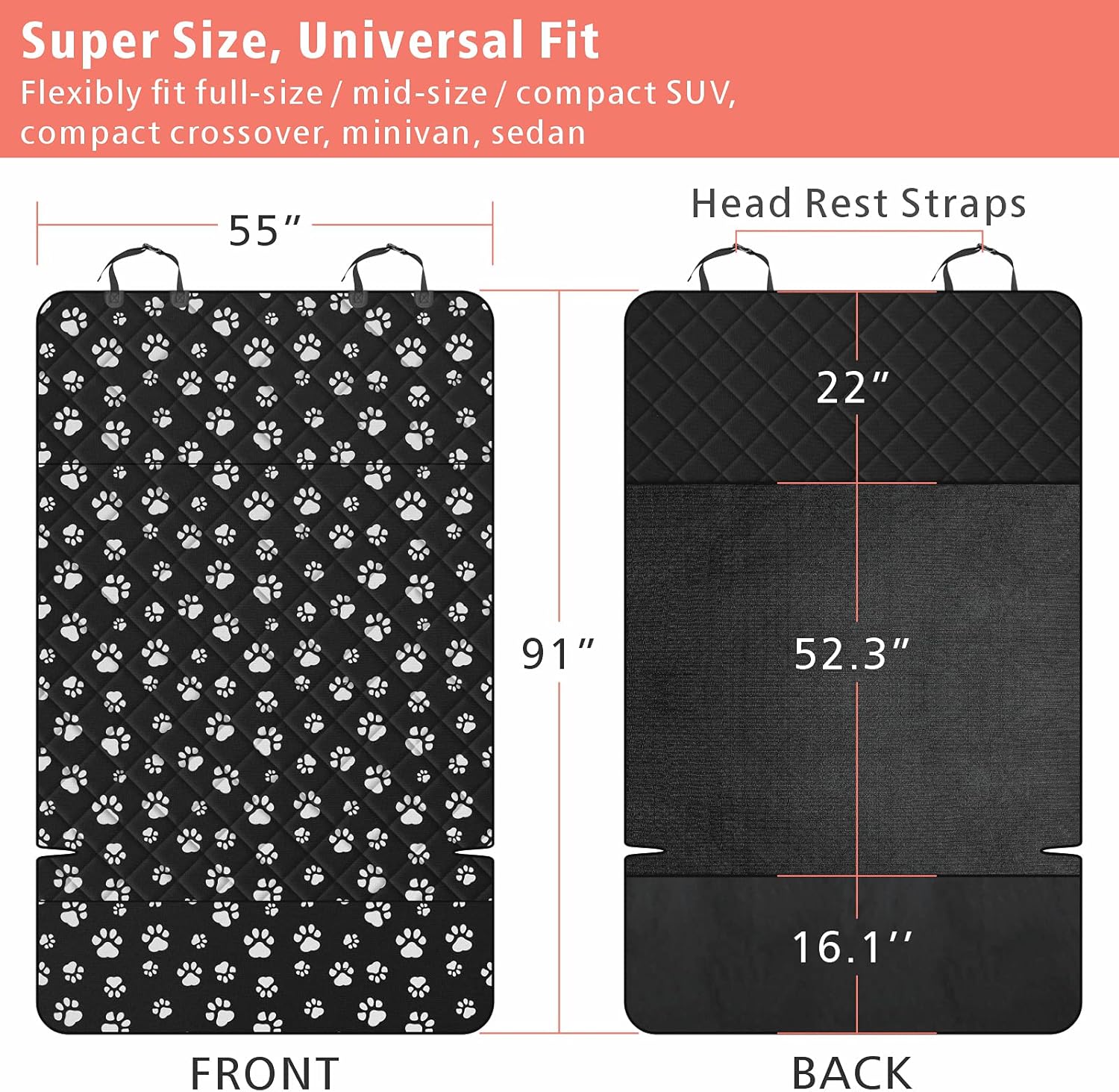 - Universal Fit: This cargo cover for dogs measures 54*91 inch, fits full-size /mid-size / compact SUV, compact crossover, minivan, sedan. Foldable to adjust its size to fit specific vehicles