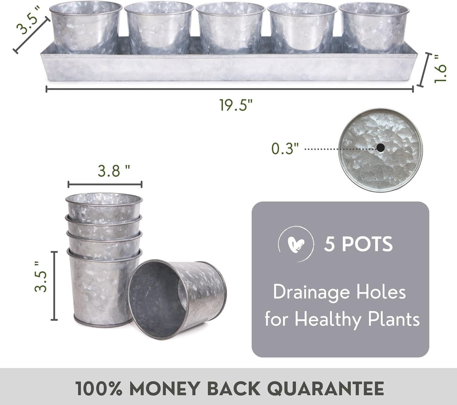 - STYLISH FARMHOUSE DECOR โ This stylish and unique set of 5 galvanized garden pots combines practical design and superior functionality. Herb planters for indoor plants is a convenient addition to any chef's or home cook's kitchen