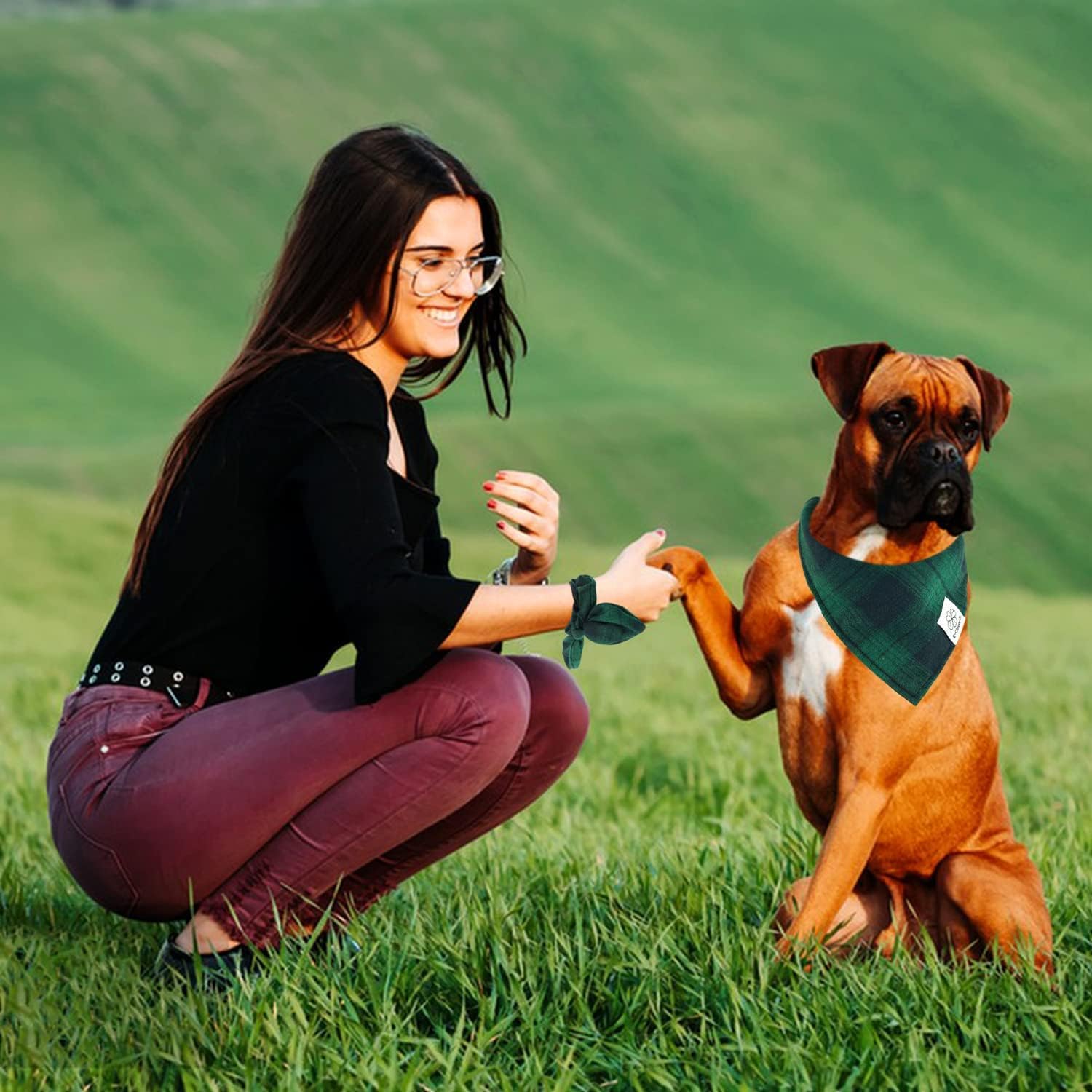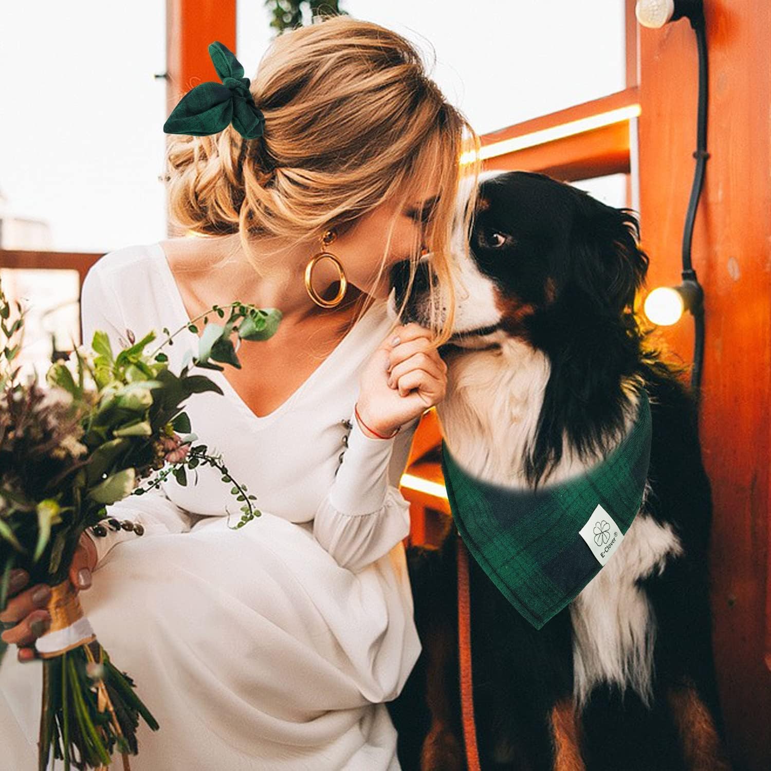 - Matching Bandana and Scrunchie Set - It’s full of love when your pets is wearing the buffalo dog bandanas boy and you are wearing the bow scrunchies. When traveling, sleeping, taking photos or daily walking, adorable St Patricks Day dog bandana and plaid scrunchie is a pretty accessories. The scrunchie can be worn as a wrist accessory and hold your hair. Beautiful dog bibs and bow scrunchie with green tartan pattern, it’s nice photo props for holiday.