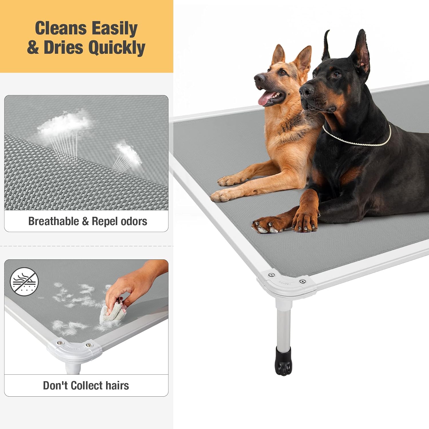 Veehoo Chew Proof Elevated Dog Bed - Cooling Raised Pet Cot - Silver Aluminum Frame and Durable Textilene Mesh Fabric, Unique Designed No-Slip Feet for Indoor or Outdoor Use, Grey, XX-Large, CWC2003
