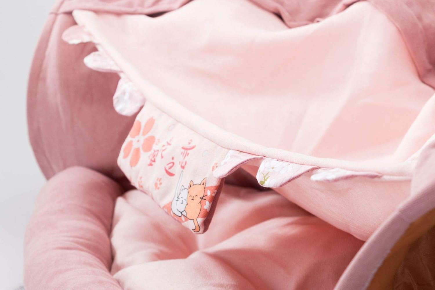 - Cat Tunnel Bed Made by cloth fabric, soft and durable, non-skid bottom.The cotton mat can be are detachable and easy to clean, and the exquisite site bed curtains satisfy the cat's habit of hiding and increase the sense of security. With two scratching balls hanging on each end of the tunnel will attract your lovely cat’s attention and arouse curiosity.