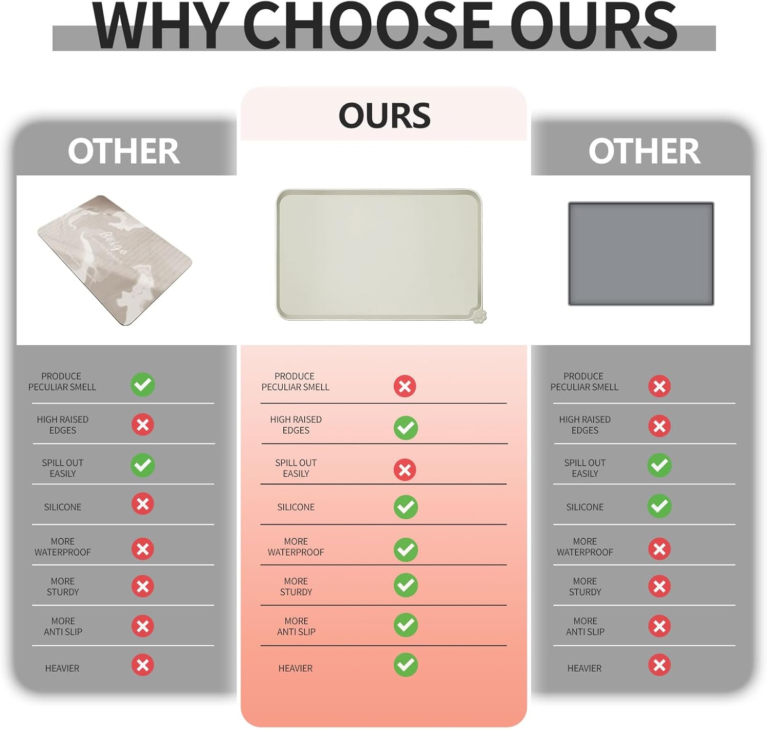 - High-raised edges: say goodbye to messy floors with our mats' high-raised edges that protect your floors from spills and splashes. Keep food and water contained and your floors mess-free