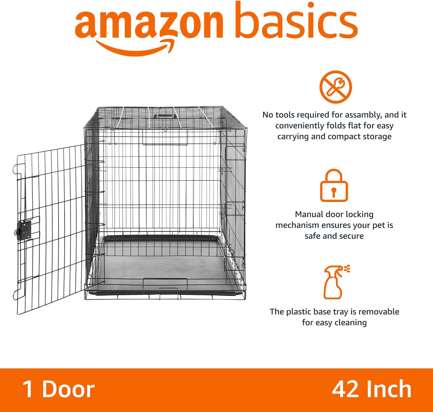 Amazon Basics Durable, Foldable Metal Wire Dog Crate with Tray, Single Door, 42 x 28 x 30 in, Black