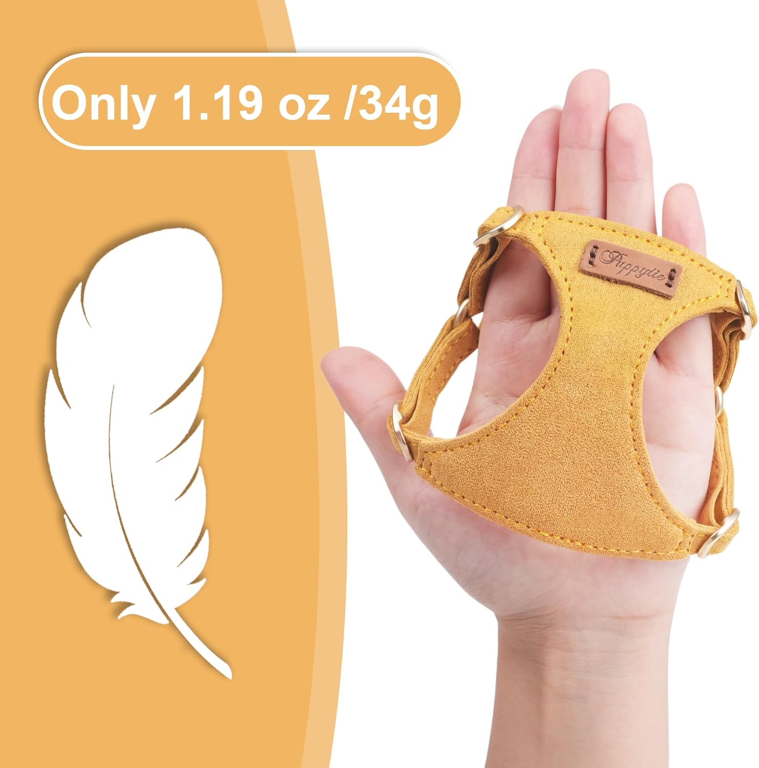 Puppytie No Pull XXS Puppy Harness with Multifunction Dog Leash,Soft Adjustable No Choke Escape Proof Pet Harness Vest,Yellow,XXS