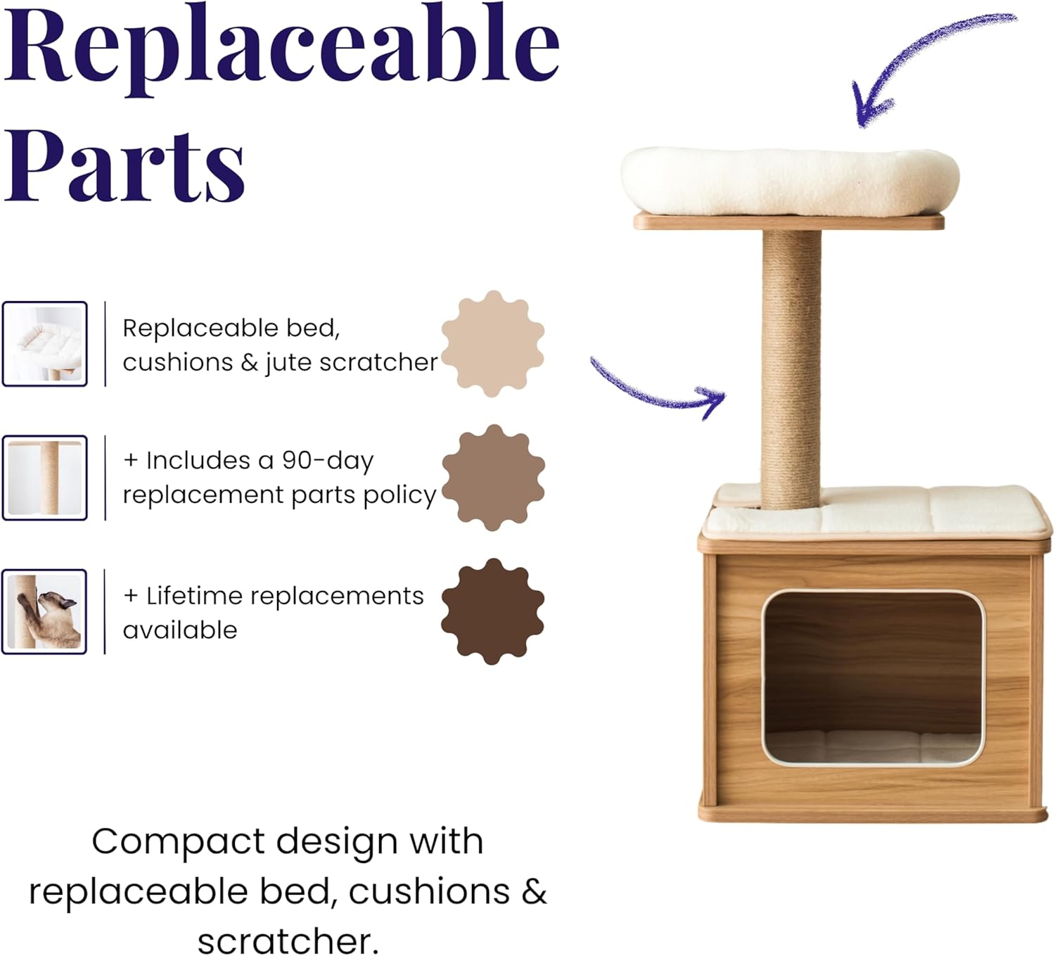 Catry 29.7" Tall 3 Level Laminated Wood Cat Tree with Large Base Condo, 2 Paded Steps, Natural Jute Scratching Post, Sturdy and Easy to Assemble for Small Cat, Brown
