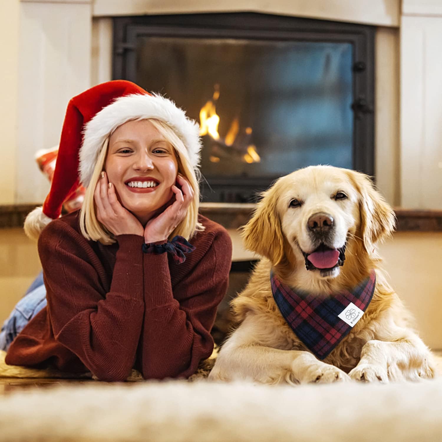 - Matching Bandana and Scrunchie Set - It’s full of love when your pets is wearing the dog handkerchief bandana and you are wearing the bow scrunchies. When traveling, sleeping, taking photos or daily walking, adorable dog bandana girl and plaid scrunchie is a pretty accessories. The scrunchie can be worn as a wrist accessory and hold your hair. Beautiful dog drool bibs and bow scrunchie with red and blue tartan pattern, it’s nice photo props for holiday.