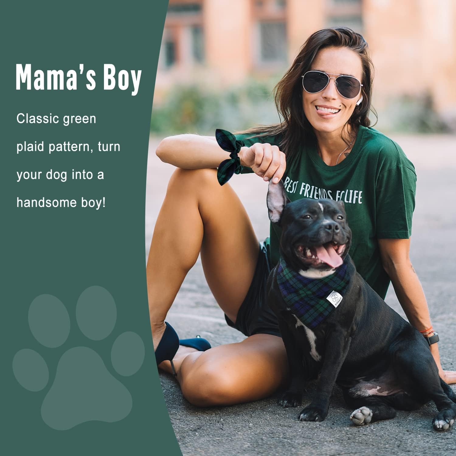- Matching Bandana and Scrunchie Set- It’s full of love when your pets is wearing the dog scarves and you are wearing the bow scrunchies. When traveling, sleeping, taking photos or daily walking, adorable dog scarf and plaid scrunchie is a pretty accessories. The scrunchie can be worn as a wrist accessory and hold your hair. Beautiful dog drool bibs and bow scrunchie with green and blue tartan pattern, it’s nice photo props for holiday.