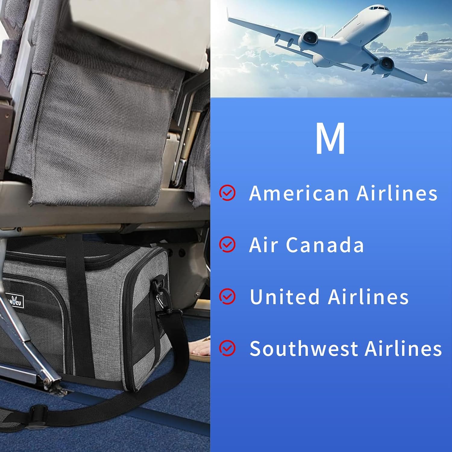 - 🚗【FLIGHT & CAR TRAVEL】: Folded size: 17.1 x 11.4 x 3.4 inches; Unfolded size: 17.7 x 11 x 11 inches. Wakytu pet carrier meets United Airlines/Alaska Airlines/Air Canada/Delta Airlines boarding requirements and can be placed under the front seat in the cabin. ①Buckle on the back secures the carrier to the car seat belt. ②Adjustable shoulder straps and comfortable padded design, no shoulder hand pain even after long hours of carrying and carrying.