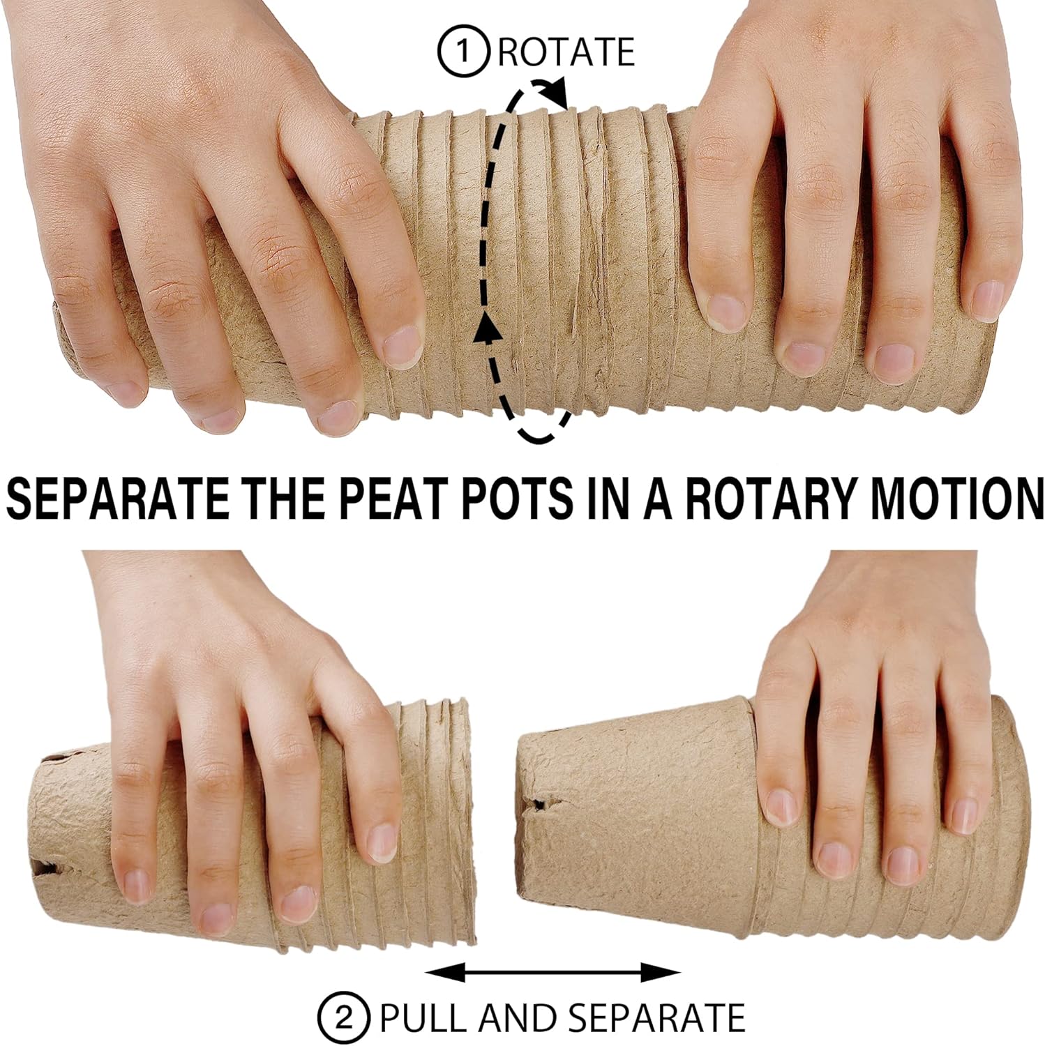 - Biodegradable Peat Pots: When plants take root and sprout, the plant container will be biodegraded and become organic nutrients for absorption by plants, just transplant the whole pots to the ground or larger plant pots, they will break down on their own.