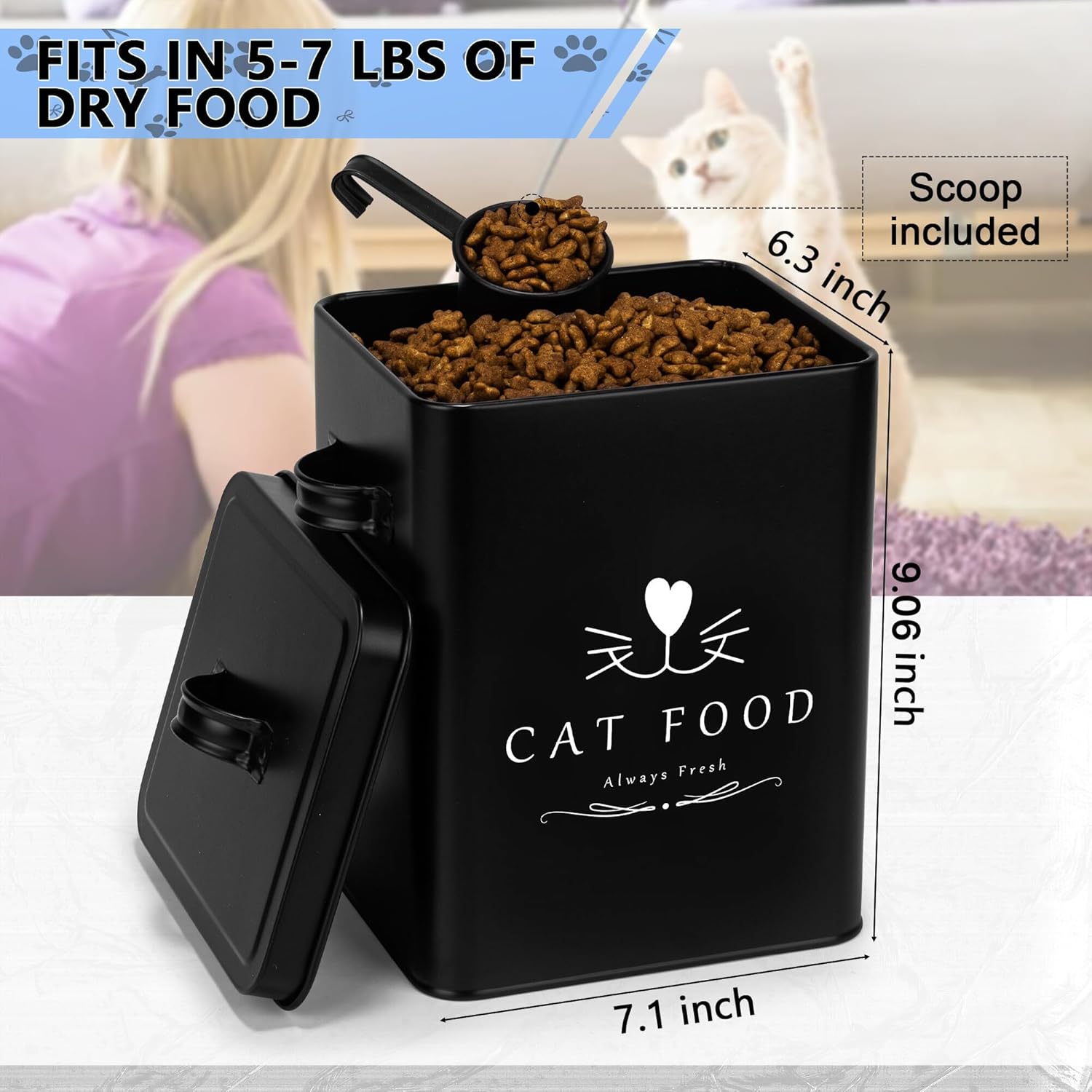 - π¦ππ¬ "π‘π’" ππΌ π£πππ¦π§ππ ππ’π‘π§πππ‘ππ₯π¦! This Metal Pet Container will look great on your kitchen countertop, adding an extra Farmhouse Vintage touch to your house. No more plastic bins hidden in your lockers, keep your cat's food Safe and Stylish, by Protecting the environment against plastic use.