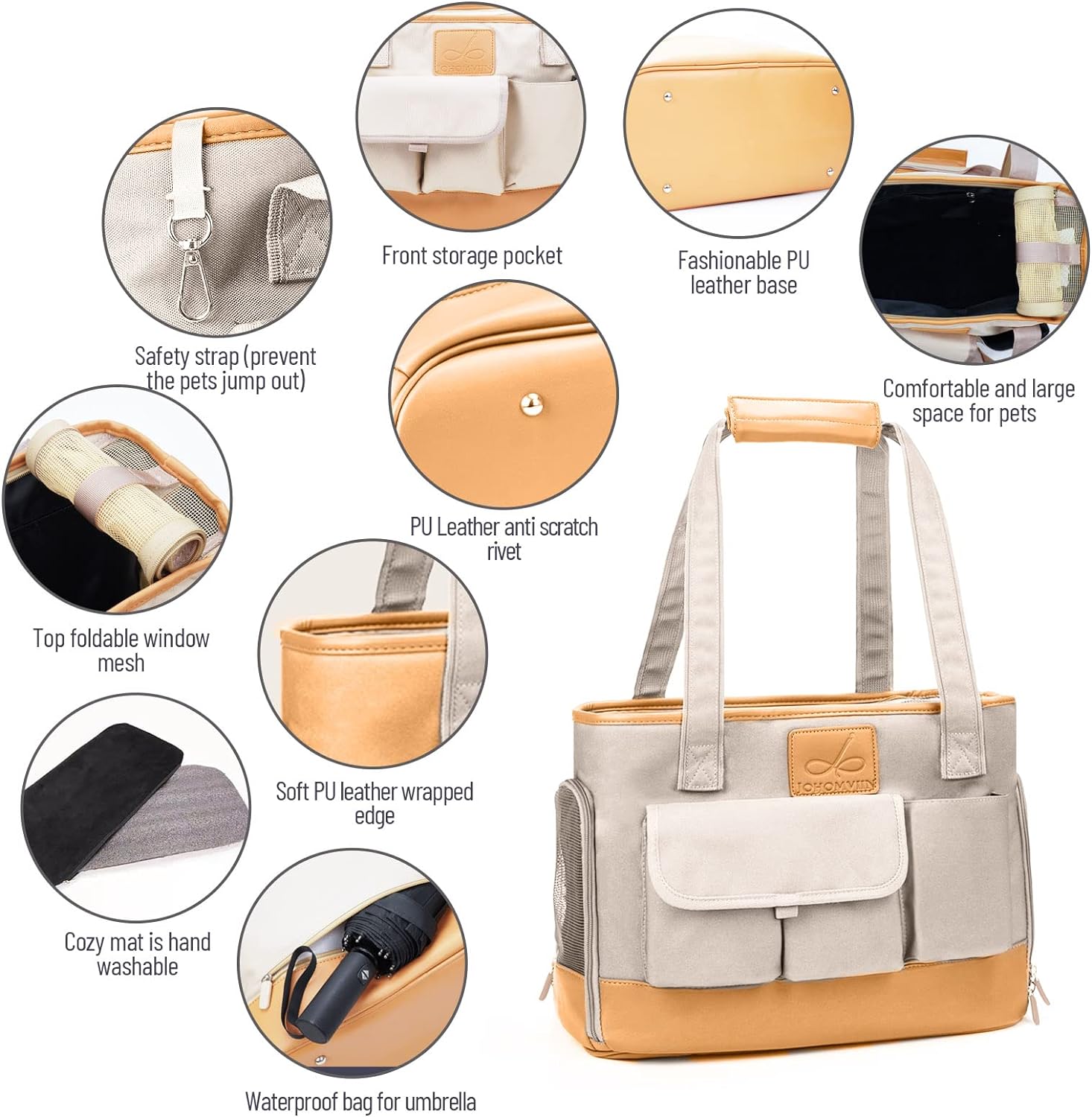 - 【New fashion design pet carrier】Johomviin’s excellent designers use the latest high-quality PU leather and waterproof Oxford cloth to match the design,Perfectly meet the daily travel needs of cats and small dogs.