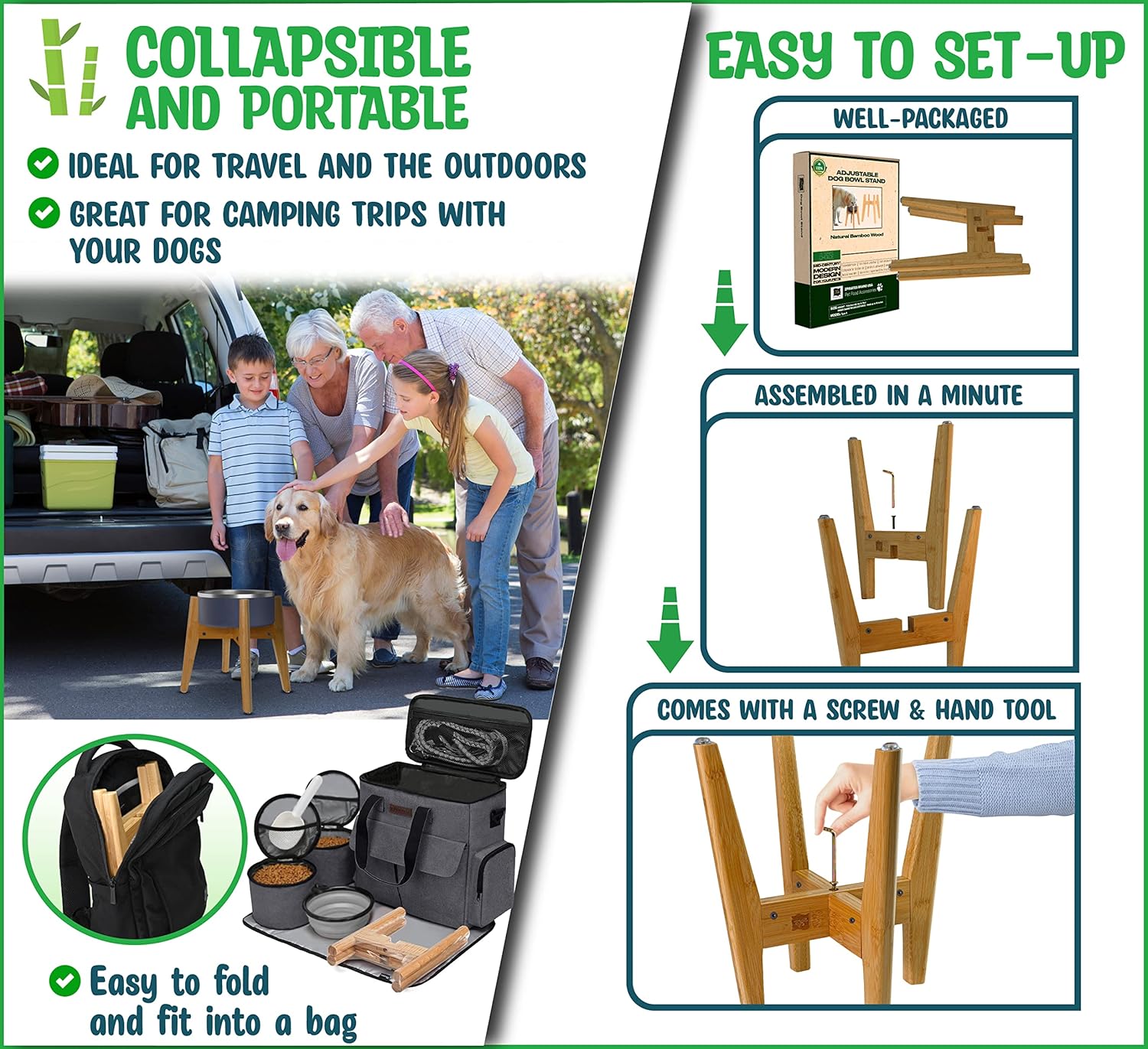 - Portable, Travel-Friendly Design β The collapsible, easy-to-assemble design fits neatly into luggage or car compartments, making it ideal for camping, trips, or visits to pet training grounds. This dog bowl stand is perfect for on-the-go pet owners.