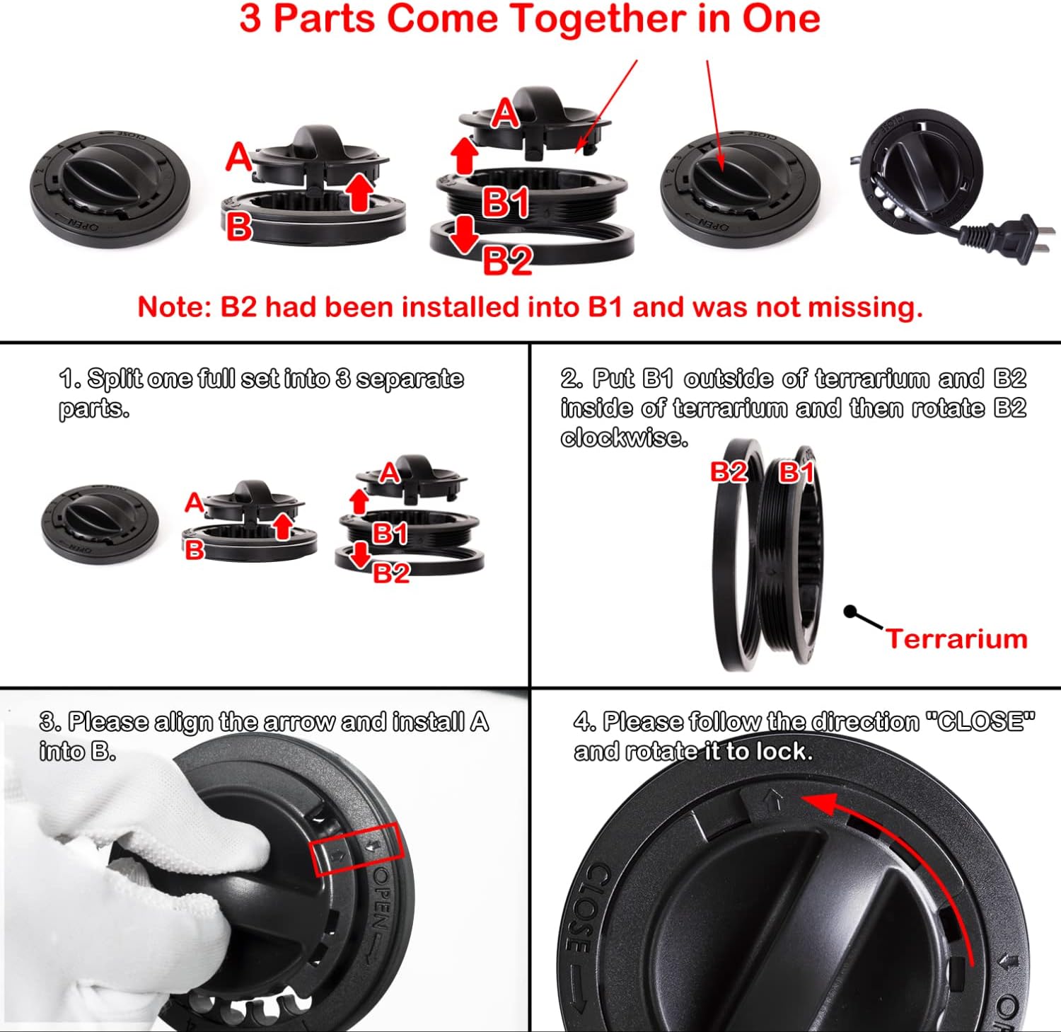 - Removable top mesh screen provide plenty of proper air-flow and allows full spectrum, UVB and IR light penetration. There is a cable pass on the right side, the rotating fixed structure can hold max 4 lines.
