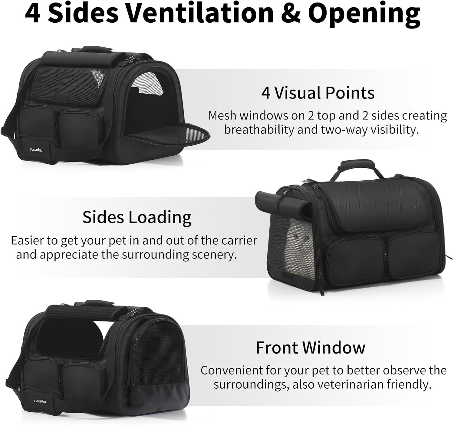 - Easy Access & Ventilated - Updated to 4 entry doors, mesh windows on 2 top and 2 sides creating breathability and two-way visibility. All enters in this cat travel bag have zippers for easy pet loading with more comfortable, also veterinarian friendly.