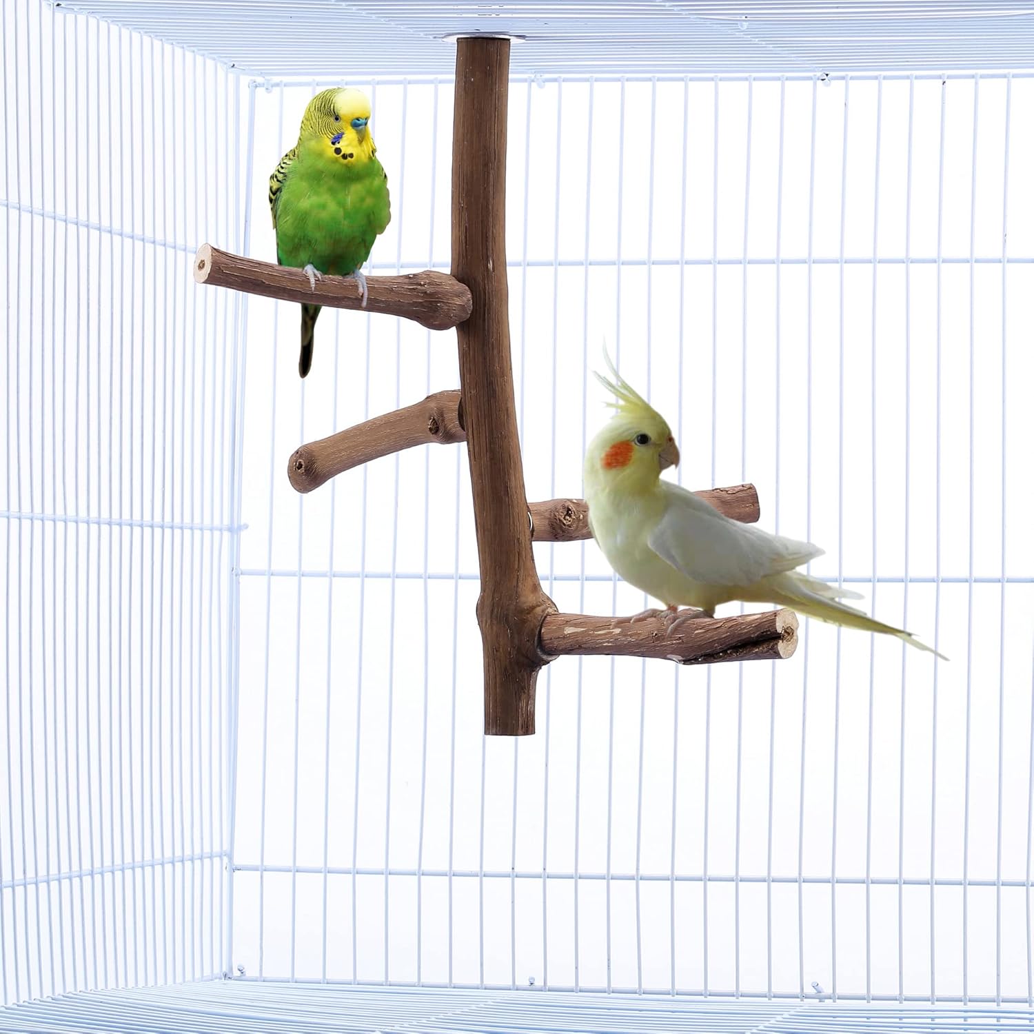 - DESIGN: The birdcage branch perches provide a habitat for the parrot to stand or rest in the cage. It allows 3-4 birds to play at the same time, your birds can play and get better communication with each other like wild birds. Perch toy also provides your pet with a nice and cozy place to exercise, relieves boredom and increases activity level.