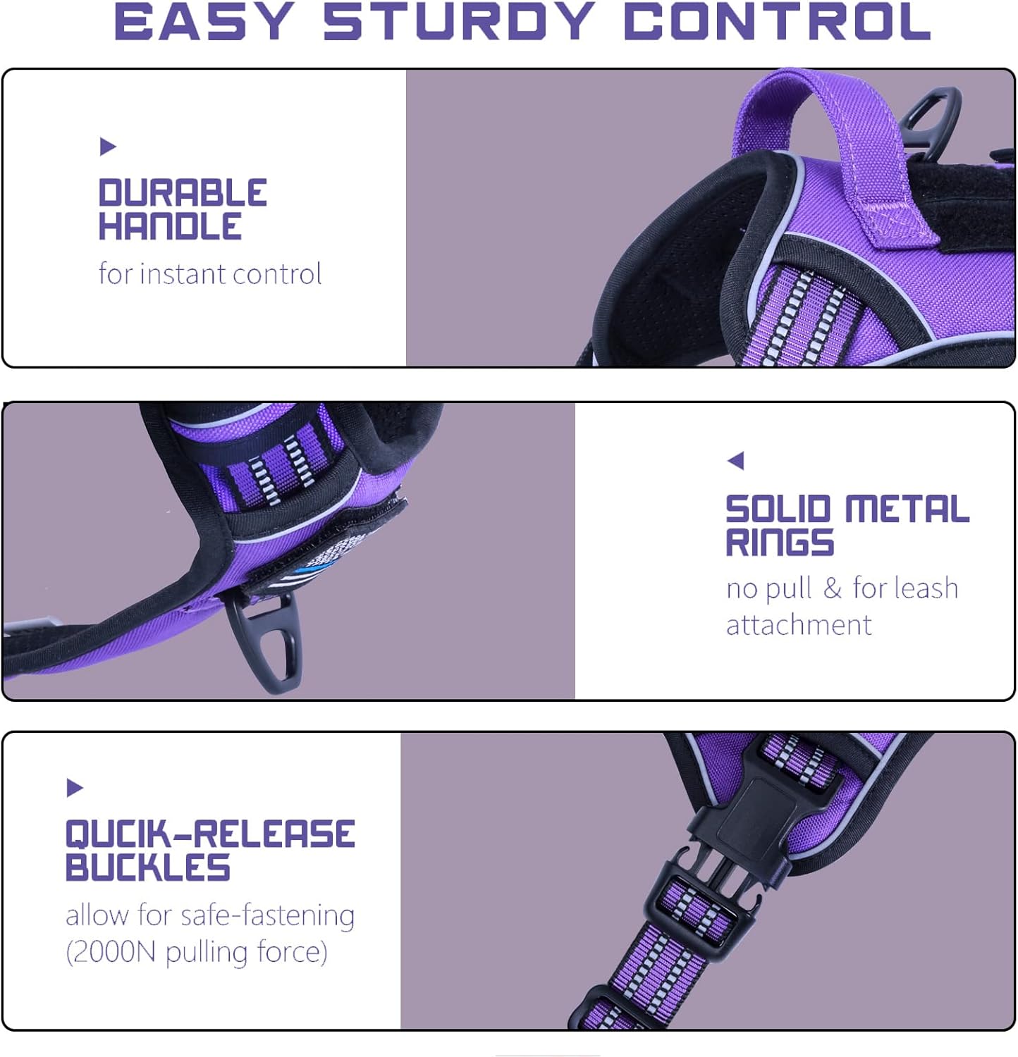 - 🐾NO PULL & STURDY BUCKLES: Provide better dog harness for dogs.🐾 Bumbin dog harness is equipped with 2 Sturdy Metal D-Rings for connecting the leash, reinforced on the extensional part. One Front Clip for No Pull control or dog training. One Back Clip for casual walking or jogging. Our plastic buckles withstand 2000N pulling force to ensure it won't be easily damaged. Recommended Large Dogs, such as Shepherd, Newfoundland, Doberman, Labrador, Alaska, German Shepherd, Large Bulldog, etc.