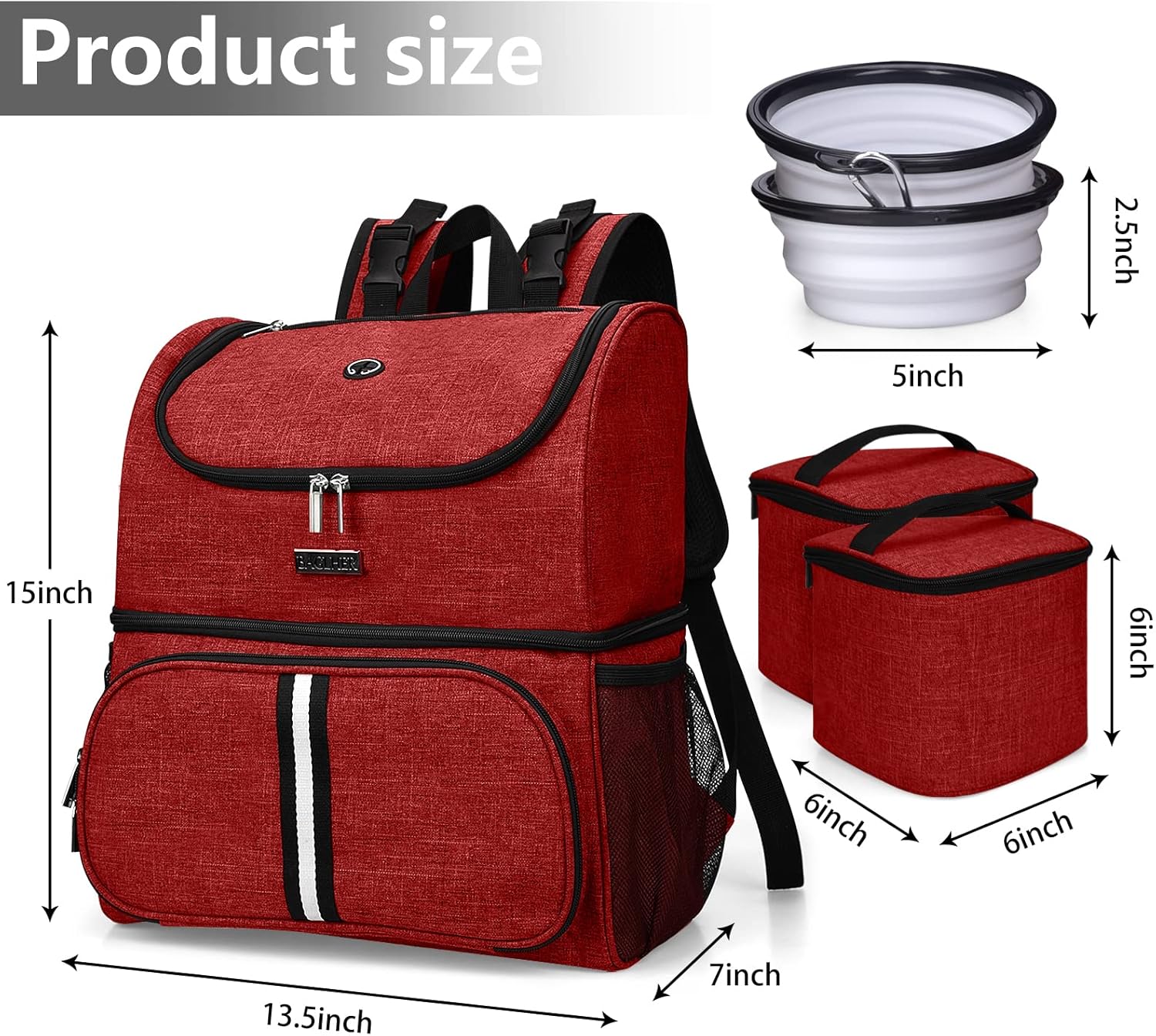 BAGLHER Pet Travel Bag, Double-Layer Pet Supplies Backpack (for All Pet Travel Supplies), Pet Travel Backpack with 2 Silicone Collapsible Bowls and 2 Food Baskets Red