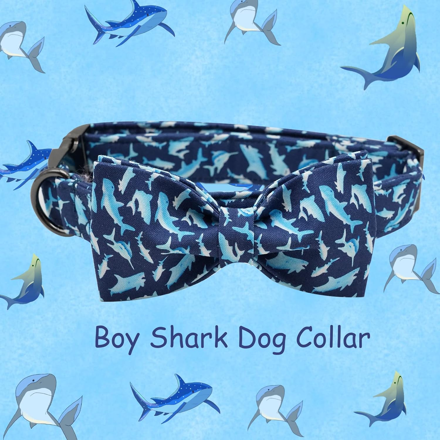 - BOY DOG COLLAR: The unique SHARK print design is perfect for showing off your pup's beauty and personality or as a dog gift. But what you need to pay attention to is that because the cutting position of each fabric is different, so you may not get the same product as shown in the picture.
