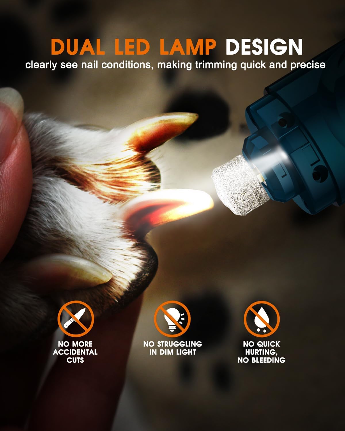 Dog Nail Trimmers and Dog Nail Clippers Kit, Whisper Quiet Electric Grinder with Light, for Small, Medium, Large Dogs, Cats Toenail Grooming, 3 Speeds