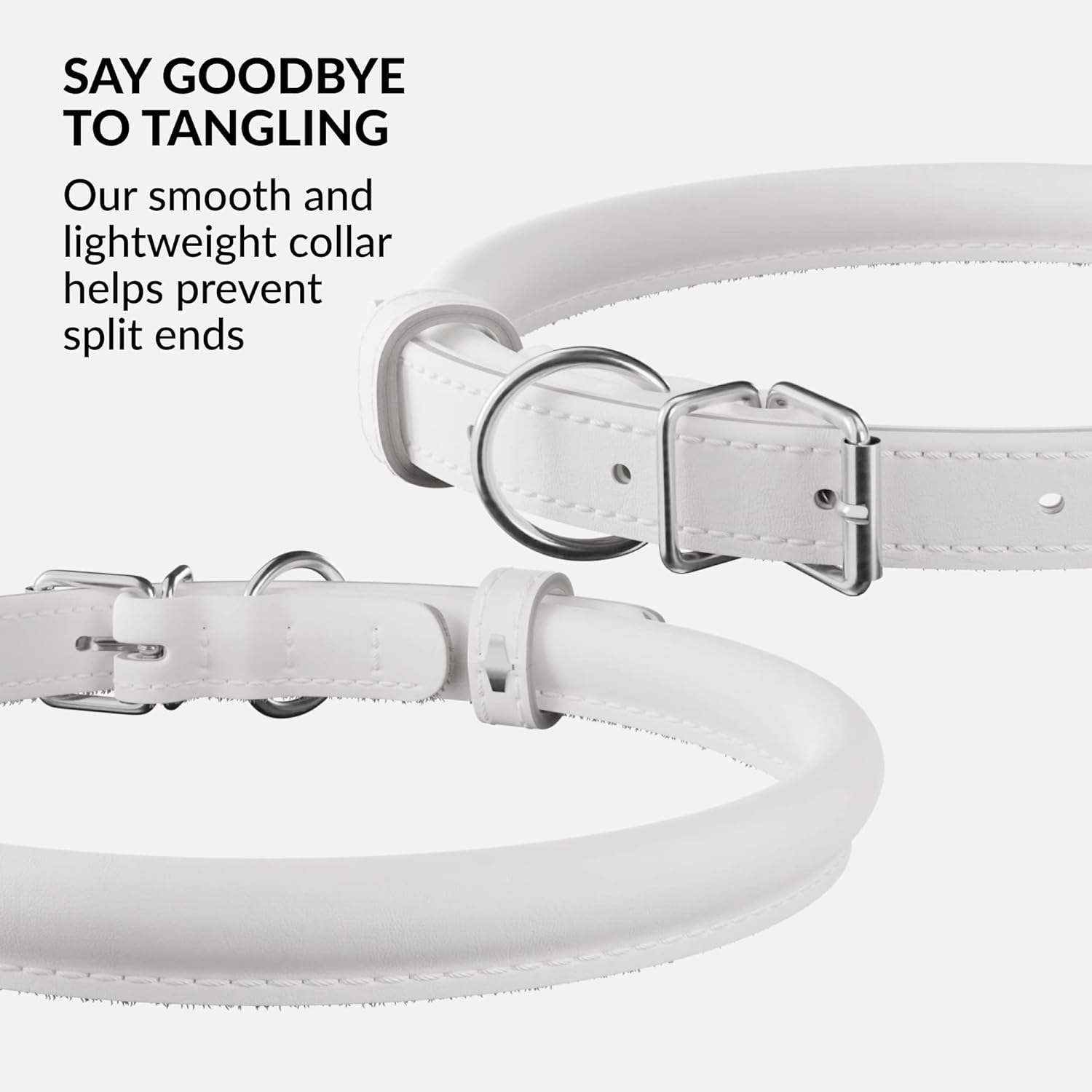 CollarDirect Rolled Leather Dog Collar, Soft Padded Round Puppy Collar, Handmade Genuine Leather Collar Dog Small Large Cat Collars 13 Colors (15-19 Inch, White Smooth)