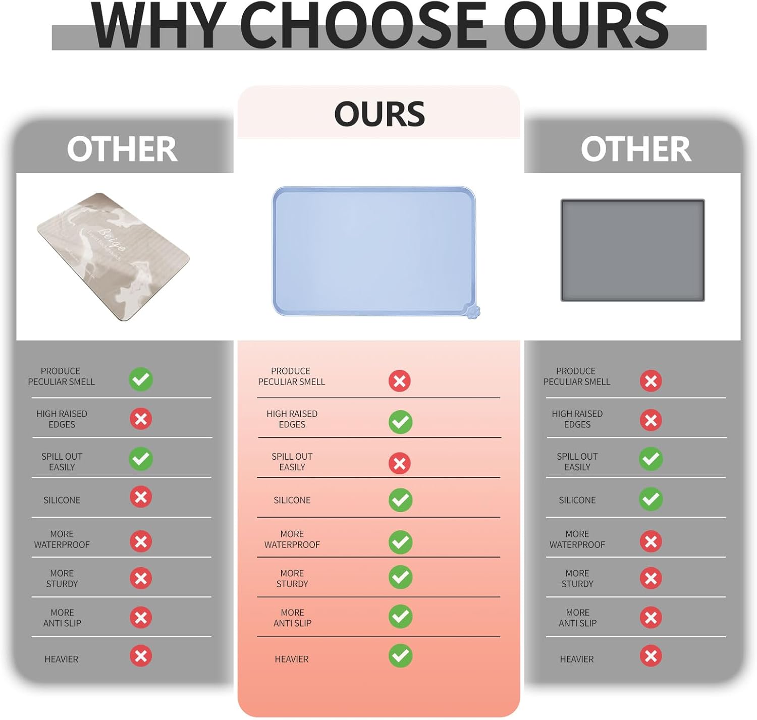 - Anti-slip design: our non-slip pet feeding mat ensures stability for your pet's bowl, preventing any water stains or spills on the floor. Enjoy peace of mind when feeding your pet, knowing that their food stays in place