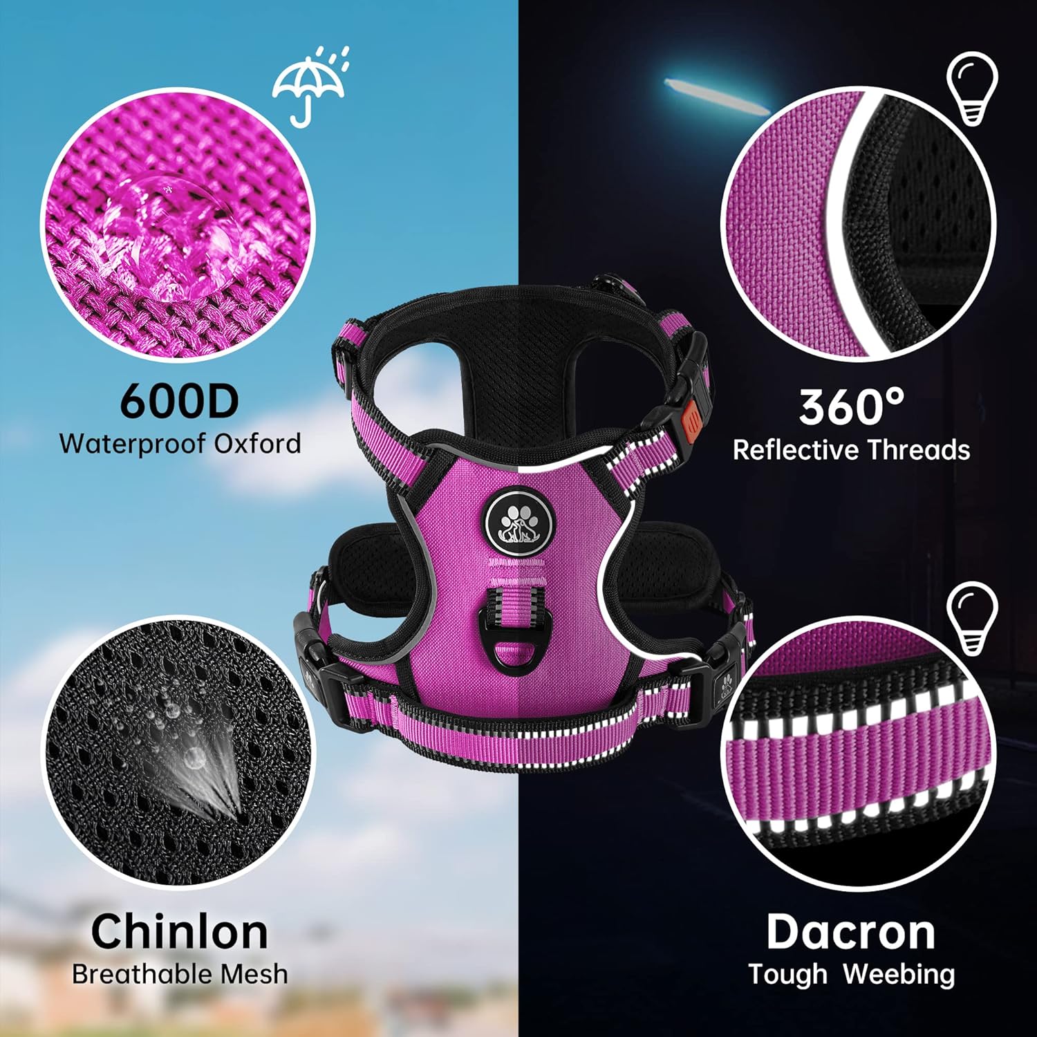 - 【EASY ADJUSTMENT】This no choke dog harness design with 4 fully adjustable straps (2 shoulder and 2 chest straps) which can be adjusted to the most fitting size, prevents the dog from breaking free while maintaining maximum comfort