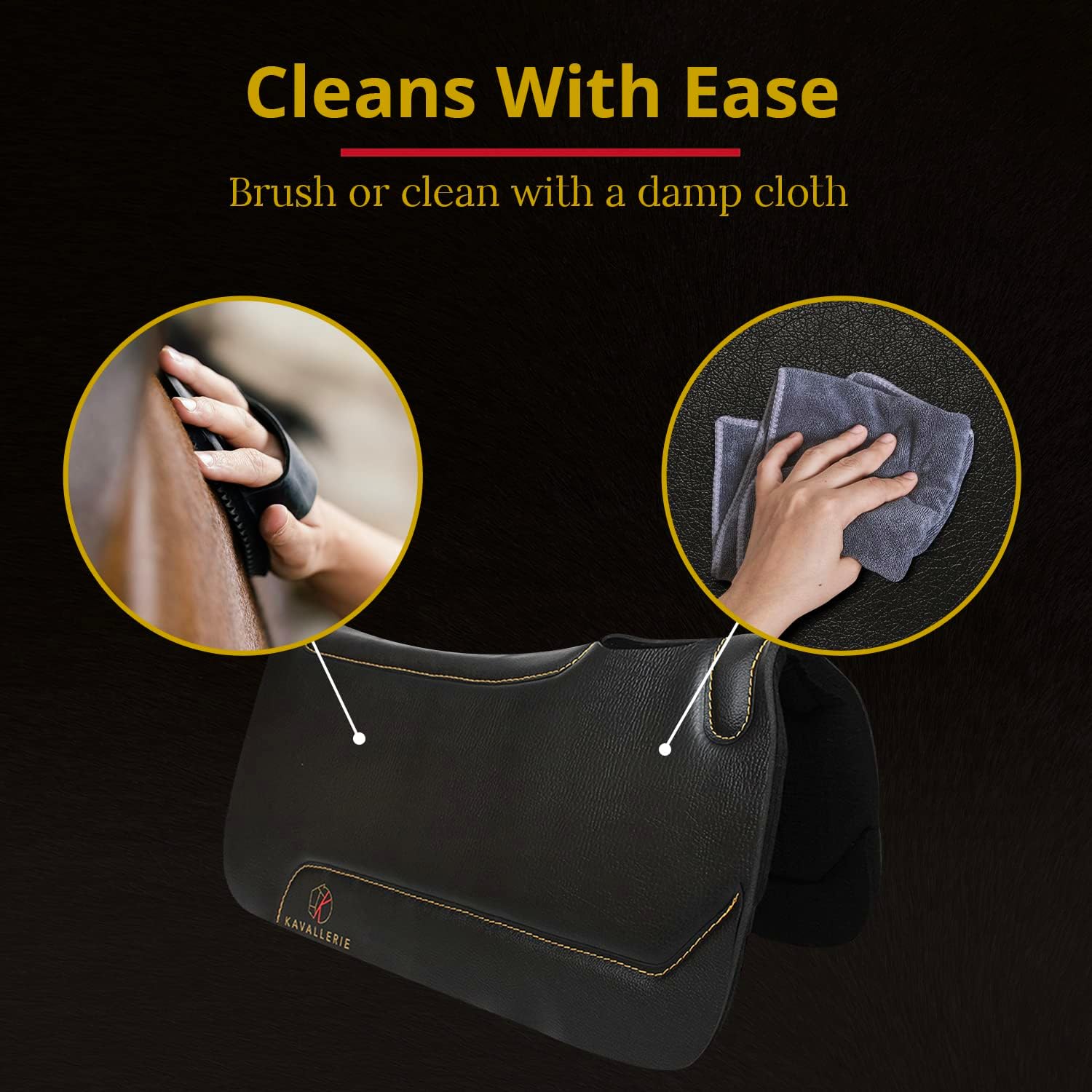 - Dirt Brushes Right Off - The cowhide used for this western saddle pad is designed for easy upkeep. Just brush or clean with a damp cloth and your saddle pad will shine and look brand new for your next ride!