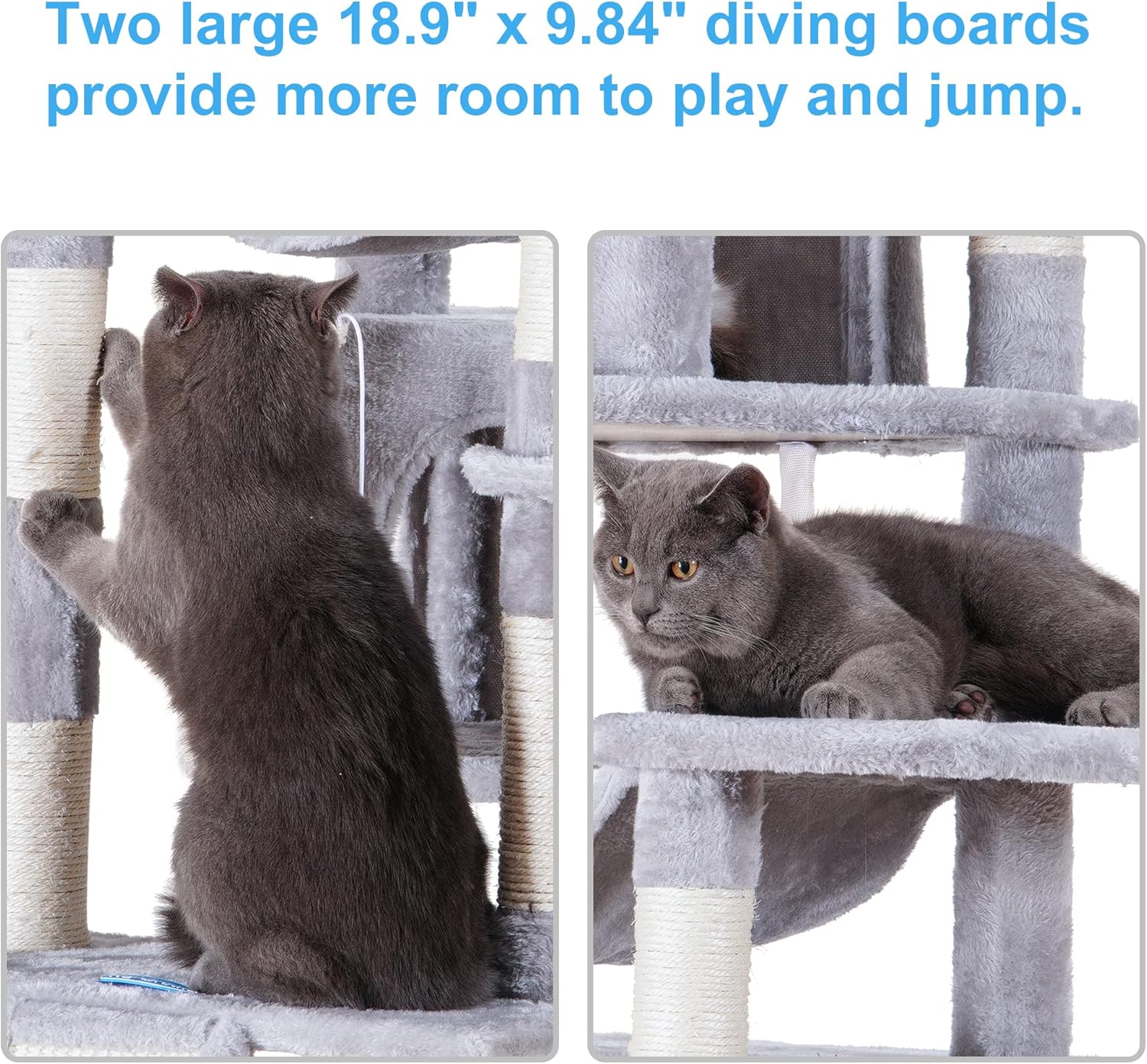 - Multiple places for cats to sharpen claws and play: Cats naturally love to sharpen their claws. A wide scratching board and sisal-wrapped scratching posts are just what cats need. Extra toy balls add more fine for cat to play
