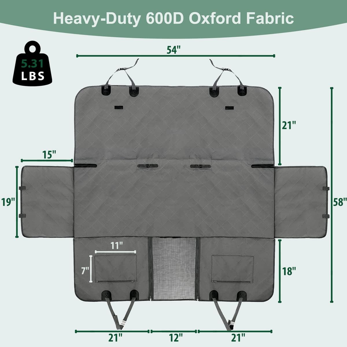 Dog Car Seat Cover for Back Seats 100% Waterproof with Metal Buckle Mesh Window Scratch Proof Heavy Duty Rear Backseat Protector Hammock for Pet, SUV Truck Vehicle Accessories, 54" x 58", Grey