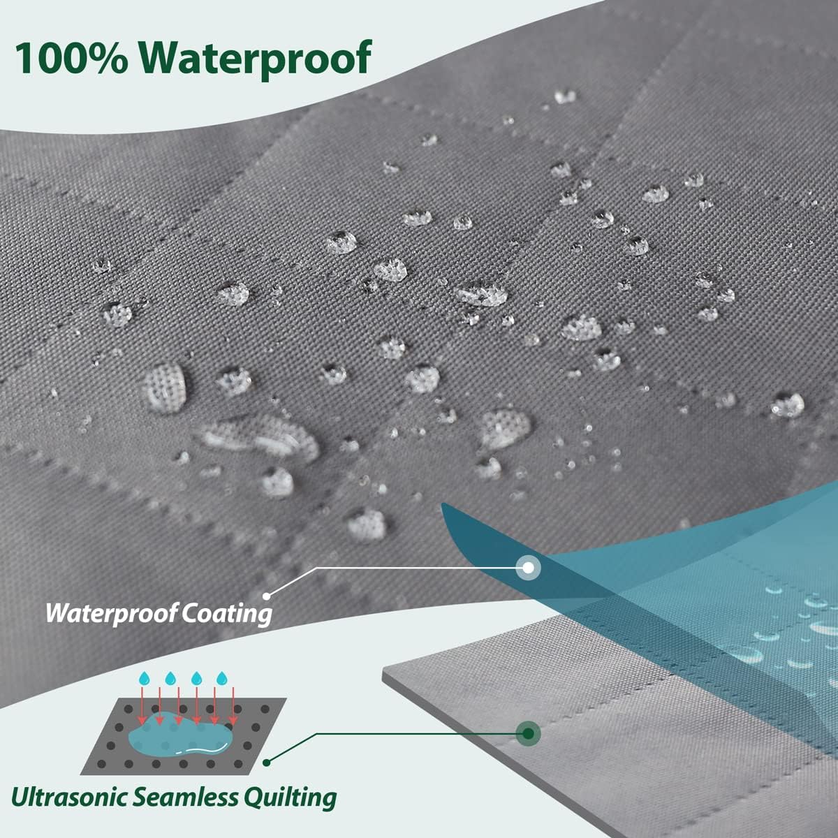 - WATERPROOF DURABLE COVER: The heavy-duty 600D oxford fabric with Teflon coating features ultrasonic seamless quilting and is 100% waterproof. Built to last with all-metal adjustable buckles and zippers for scratch resistance