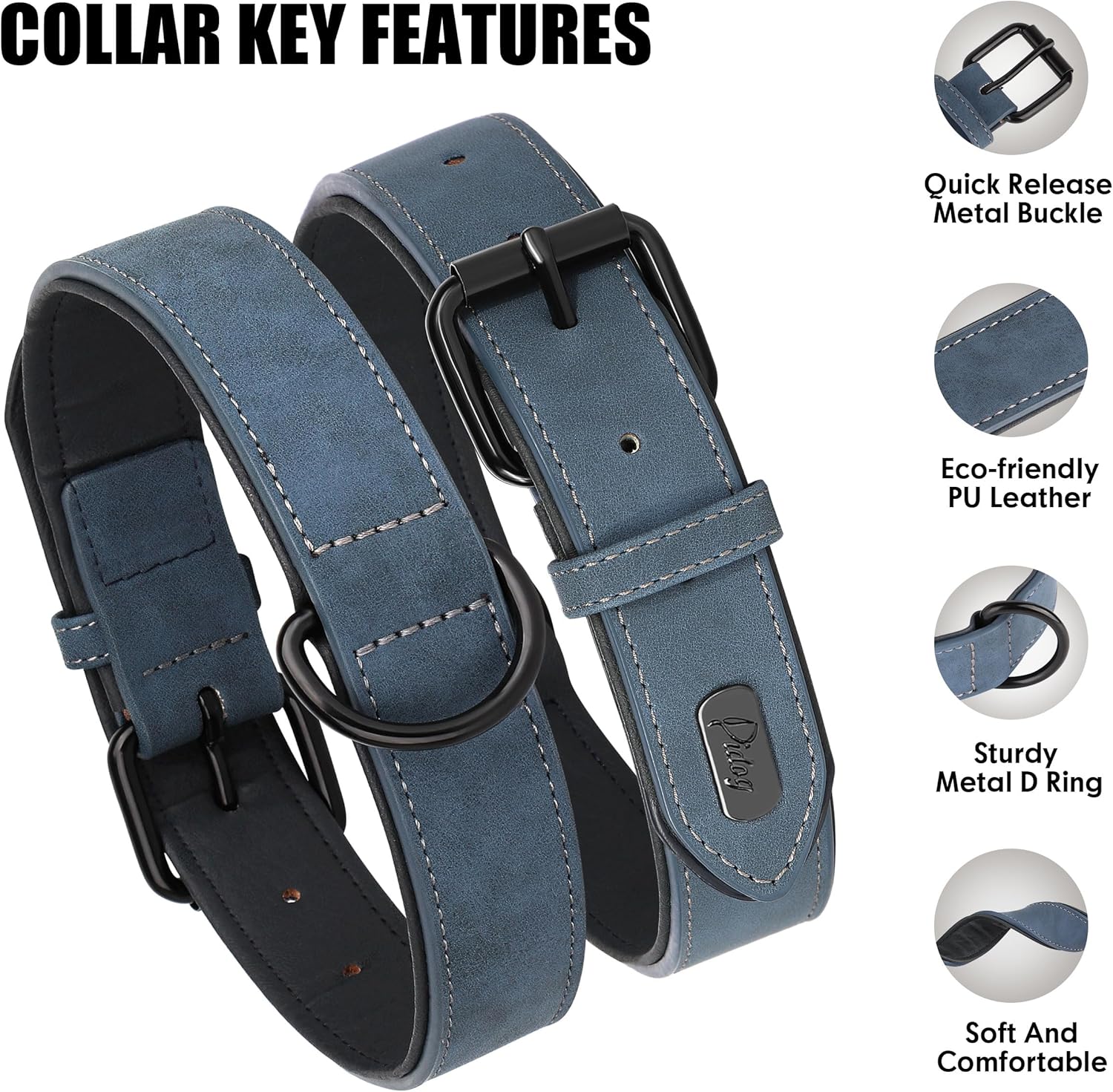 - Built-in D-ring: Metal D-ring is built next to the buckle ring for leash attached or ID tag hanging, providing you enough place for extra and multi use, more multi-functional and easy