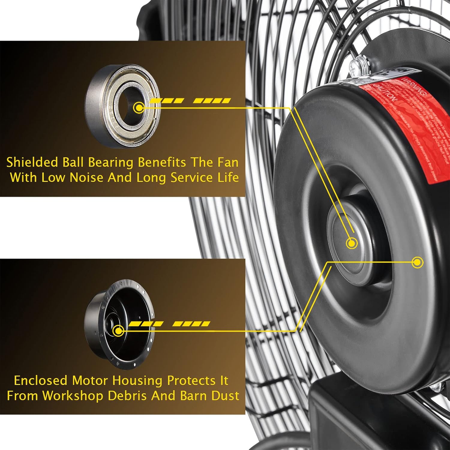 - ăMoves Much Airă: Built with 1/6HP Premium TEAO Enclosed Motor and Shielded Ball Bearings, this heavy duty industrial wall fan provides refreshing breeze for circulating large spaces, blowing distance reach 30 feet. It is ideal for Warehouse, Workshop, Factory, Garage, Basement, Greenhouse, Barn, Industrial, Commercial and Residential areas. Perfect festival gifts for Christmas/Thanksgiving Day/New Years. High speed 4600 CFM / Medium speed 4100 CFM / Low speed 3800 CFM