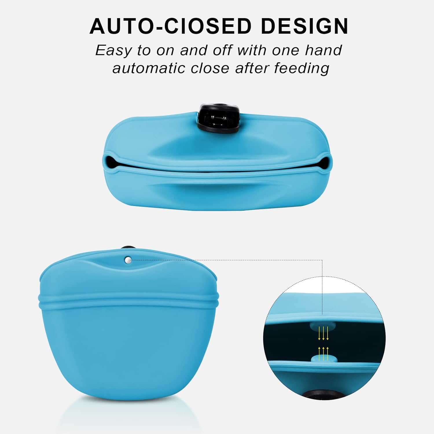 - 🐕Easy To Use🐕 - The silicone dog treat pouch is eay to use.The design of magnetic buckle closing for easy to on and off with one hand, automatic close after feeding.With the upgrated clip,you can clip to pockets、belt loops or package,it's convient to train or walk pet outside.The clicker training for dogs is easy to use, simple push button with distinct clicking sound, Train your pet just by simply pressing the clicker and command.