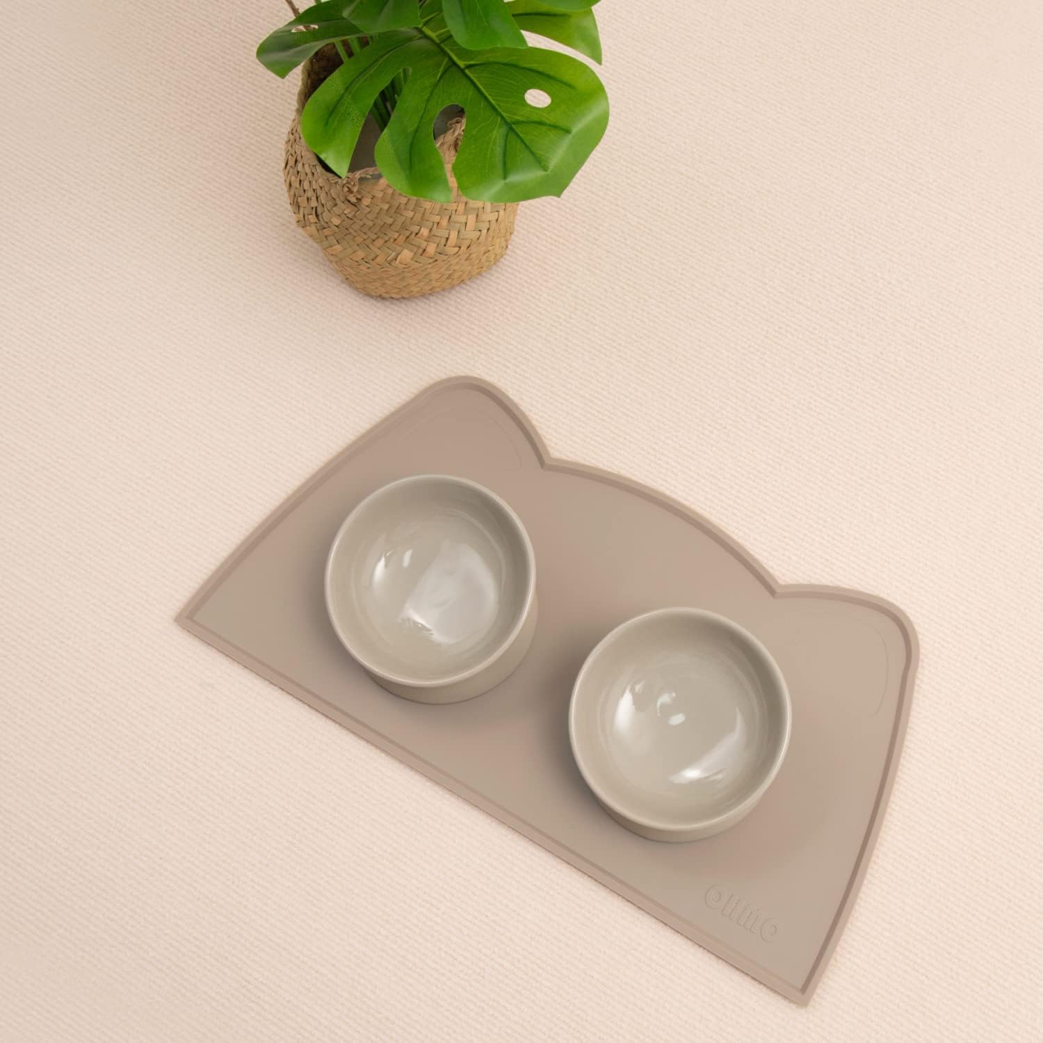 OHMO - Cat Food Mat, Silicone Pet Feeding Mat for Floor Non-Skid Waterproof Dog Water Bowl Tray, Easy to Clean Pet Placemat (Beige, 18 * 9.8'')