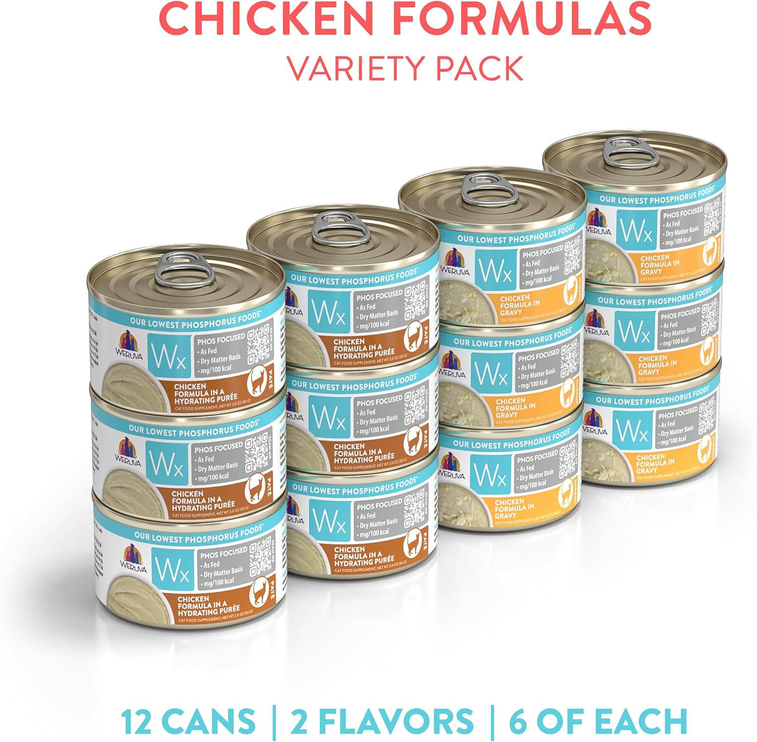 - Wx Phos Focused, Chicken Formulas Variety Pack, 3oz Can (Pack of 12)