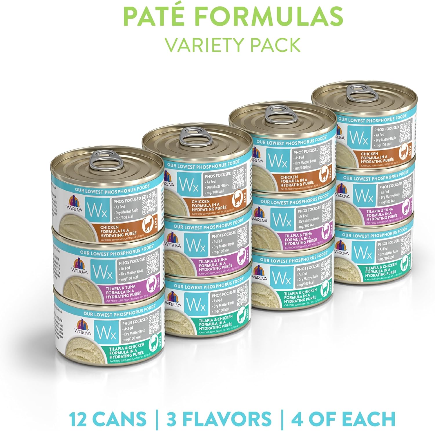 Weruva Wx Phos Focused, Pate Formulas Variety Pack, 3oz Can (Pack of 12)