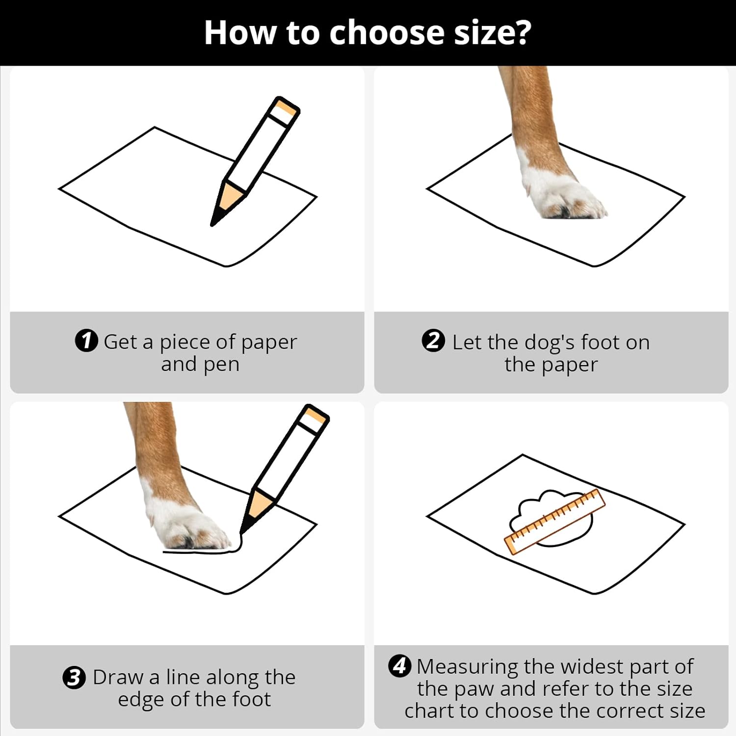 - 【Size 3】: 1.96''x2.36''(W*L).for 16-24(lbs).Great for all kinds of dogs.Place your pet's paws on paper; Mark the width of the paws, including the toes and nails,Except for the hair;Please refer to the picture size chart to choose the right size for your puppy.
