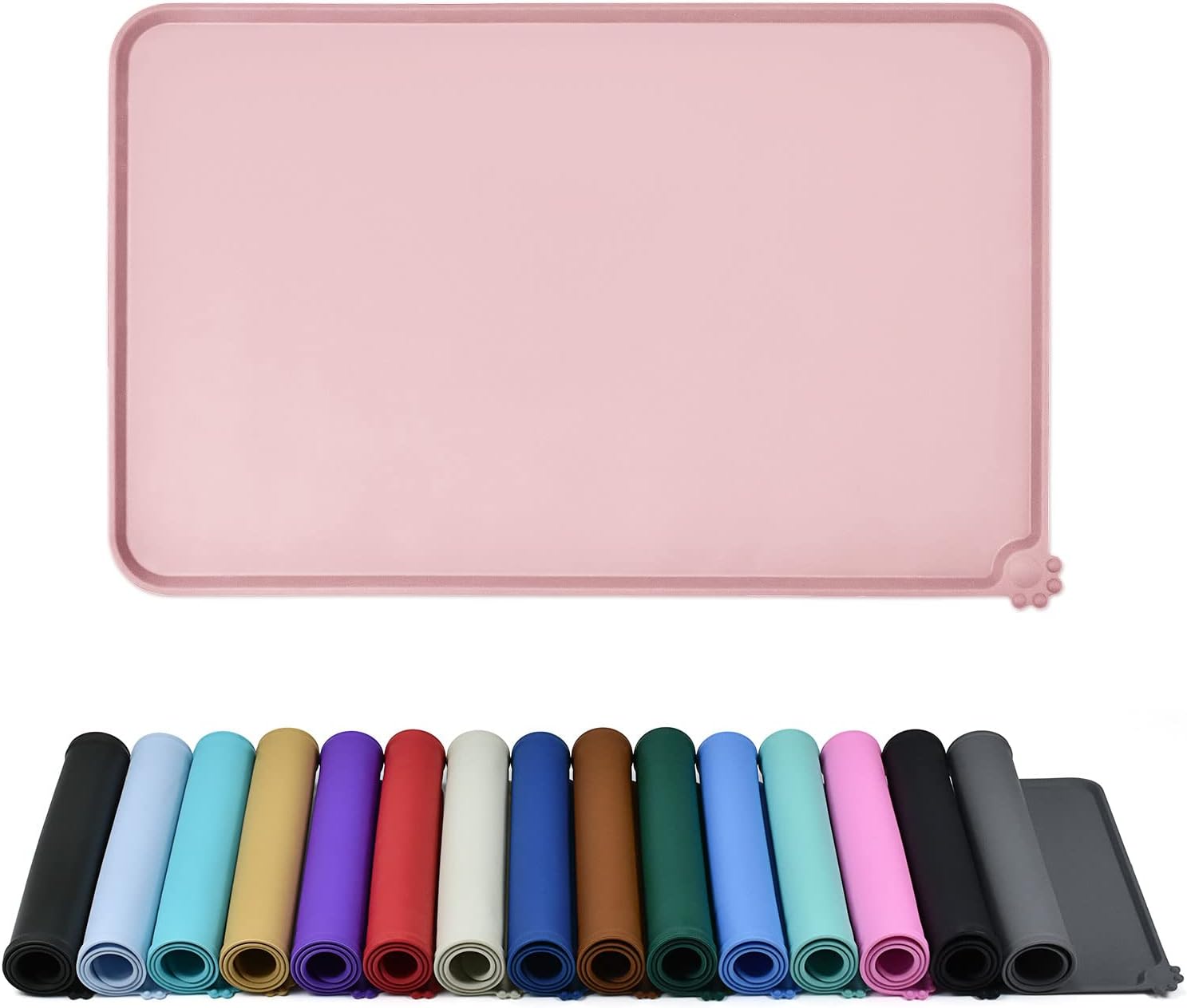 Waterproof Pet Feeding Mat with High Raised Edges, Heavier and Thicker Placemats for Cat Dog Water Bowl with BPA Free, Dogs Cats Food Mats for Messy Drinkers to Prevent Spill and Protect Floors