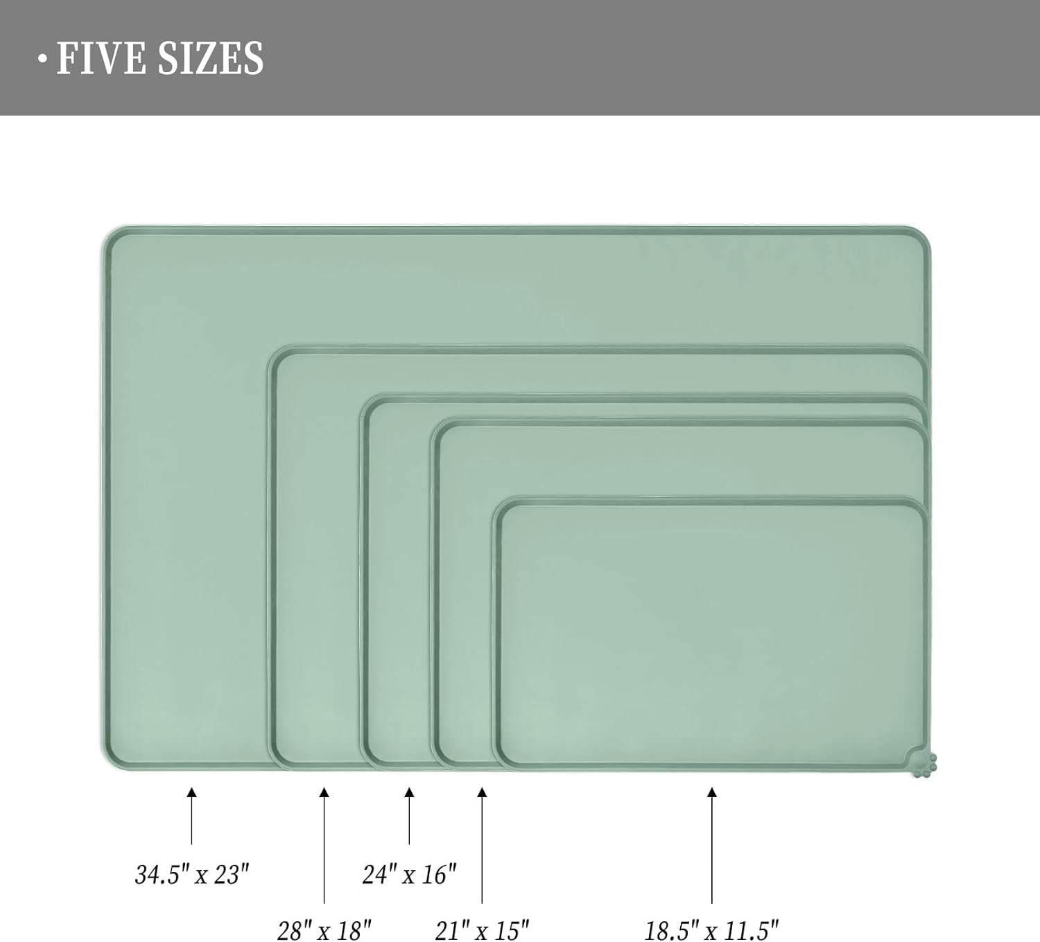 - Various sizes available: our pet mats come in 5 different sizes - 18.5" x 11.5", 22" x 14", 24" x 16", 28" x 18", and 32" x 24". Suitable for all kinds of pets, from puppies to large pets, choose the perfect size for your furry friends and avoid messy spills at mealtime