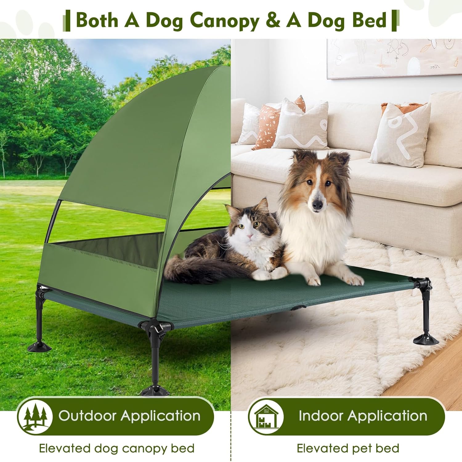 - Wider & Larger Shade Lifted Dog Bed: Comes with a large waterproof UV-proof canopy, this outside dog bed provides great shade than most other dog cots. Further more, with mesh piecing on 3 of the sides, this canopy will allow great air flow and will not block dogs' view. With this item, you will be rest assured when pets relaxing outside in summer;