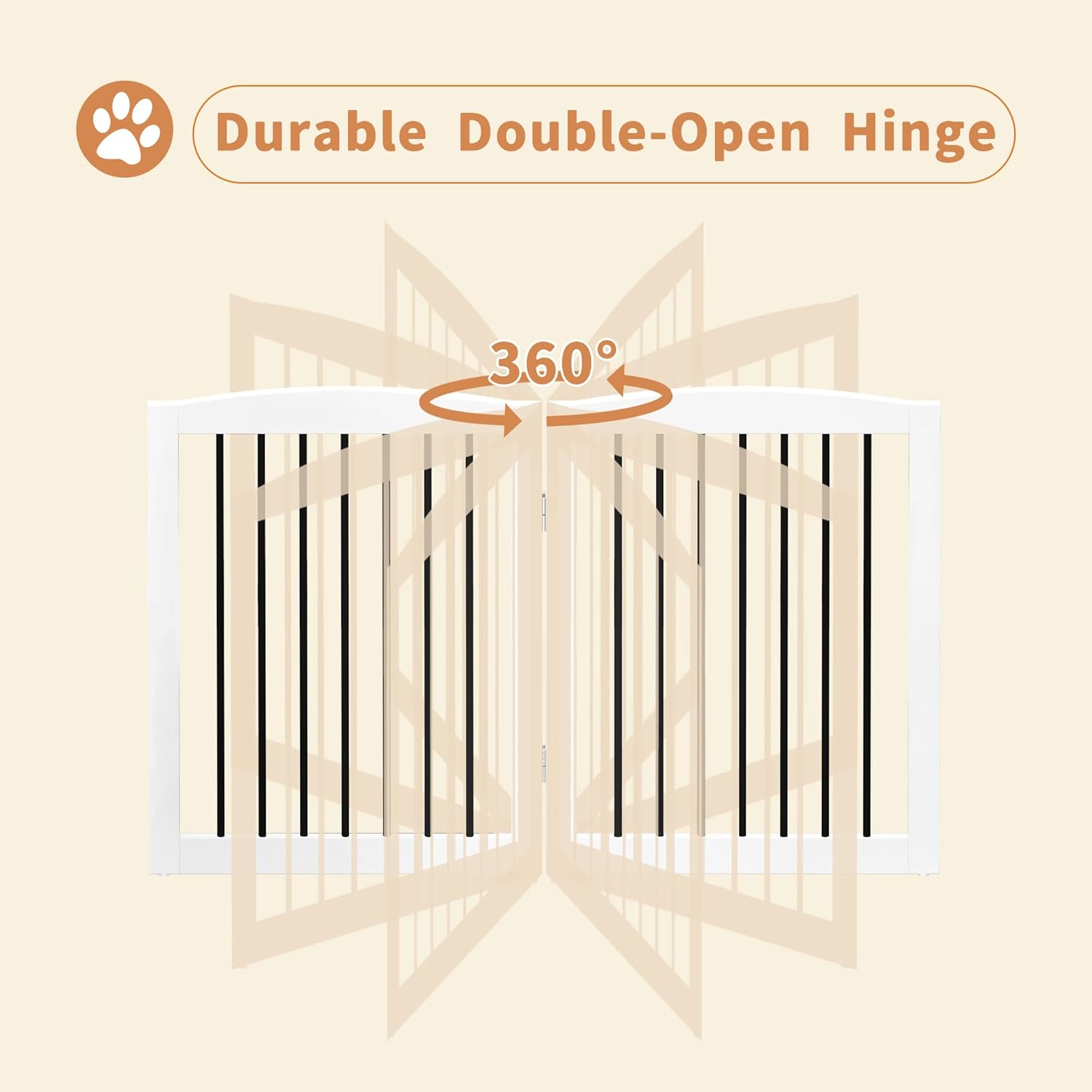 - 【NO ASSEMBLY REQUIRED】: The free standing dog gate is fully assembled and ready to use! Unfold the indoor dog fence and place it anywhere as a pet fence, room divider. Moreover, don't worry about the floor being scratched as the Non-slip rubber pads keep protecting your floor.