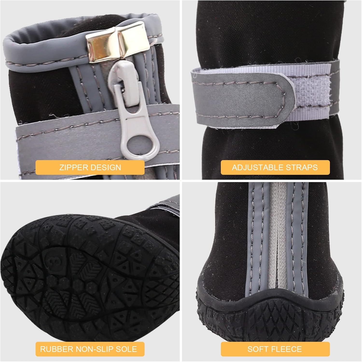 - 【ADJUSTABLE & REFLECTIVE STRIPS】These dog boots are easy to put on and take off, and the double straps can be adjusted with long straps to fix. When putting on dog shoes, please fasten the long belt, which can effectively prevent the shoes from falling off. At night, reflective strips on dog shoes make it easier to find your dog.