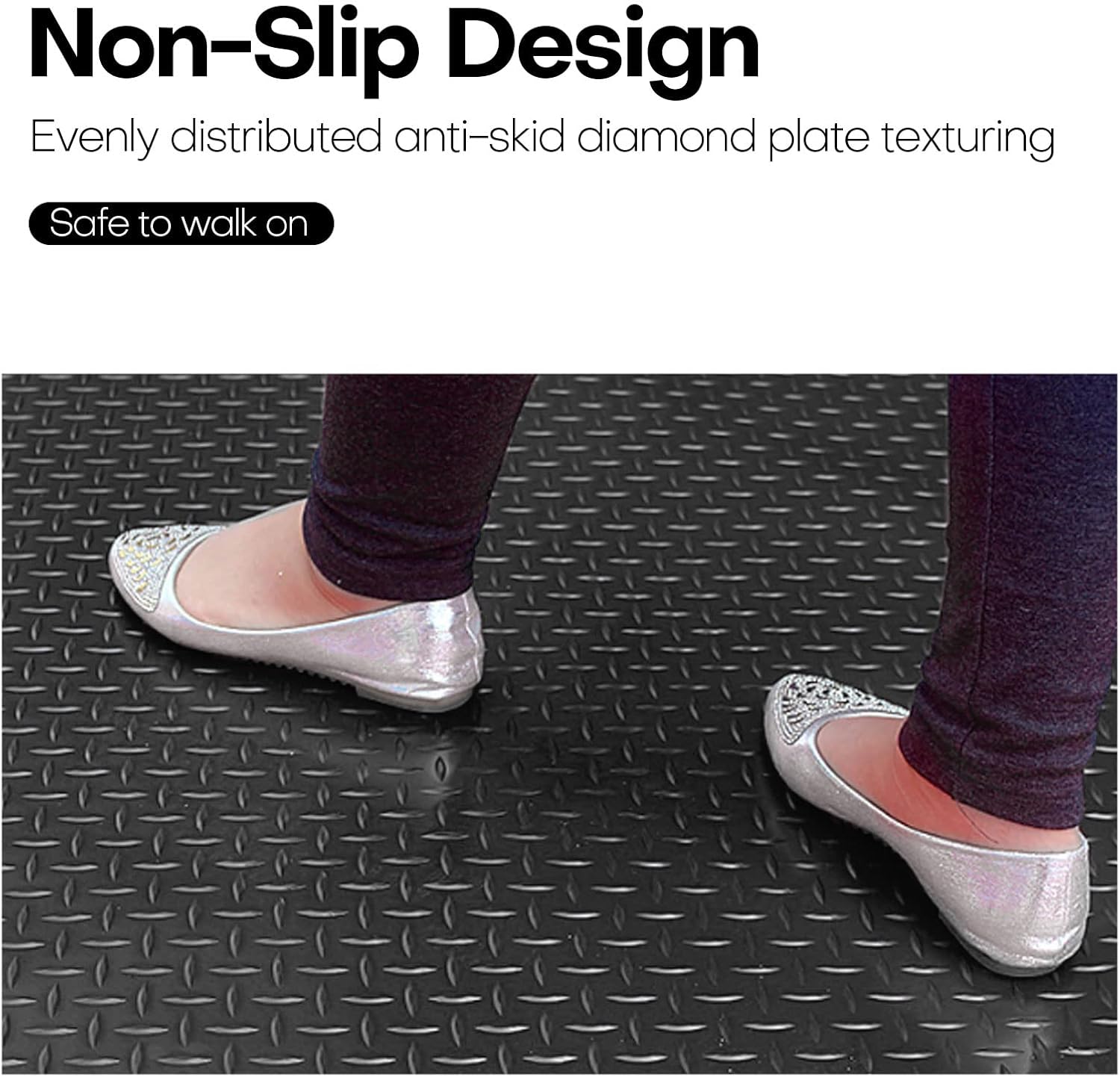 - Wide application: Suitable for garage, warehouse, basement, gym, trailer, front door, kitchen, car mat, golf cart flooring, box liner, stairs, etc. Easy to install and keep clean