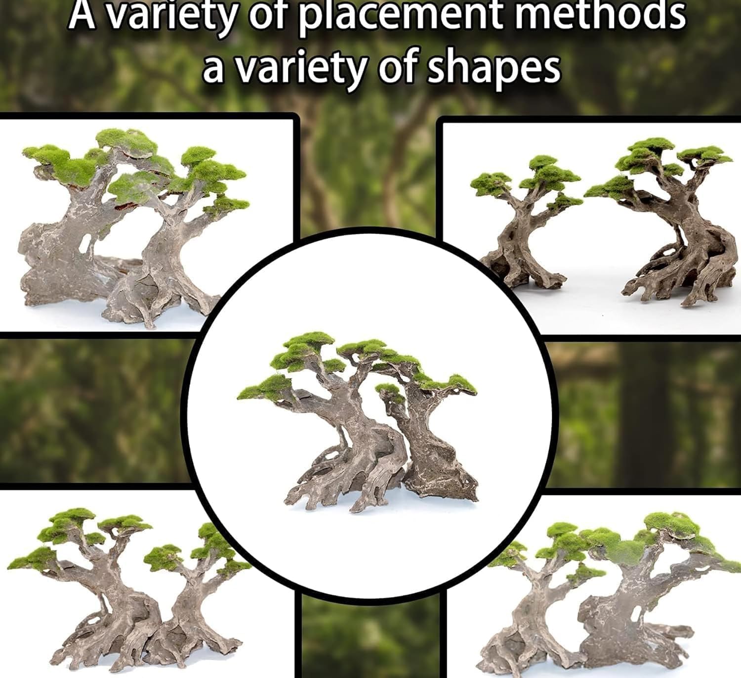 - Realistic Coloring- Looks like a real bonsai tree! This decoration is beige and gray colored with faux moss to make it look more natural and visually appealing in your tank. It’s a perfect Zen, calming accent to your room.